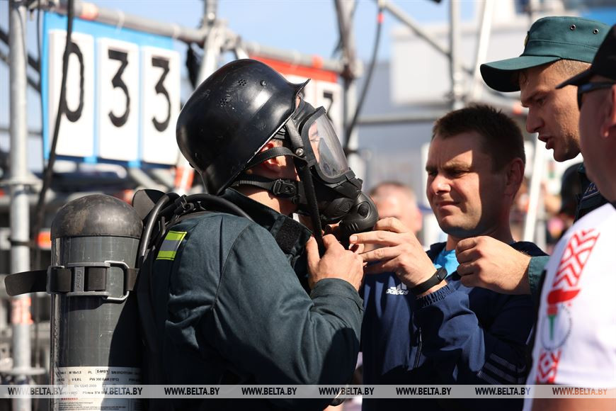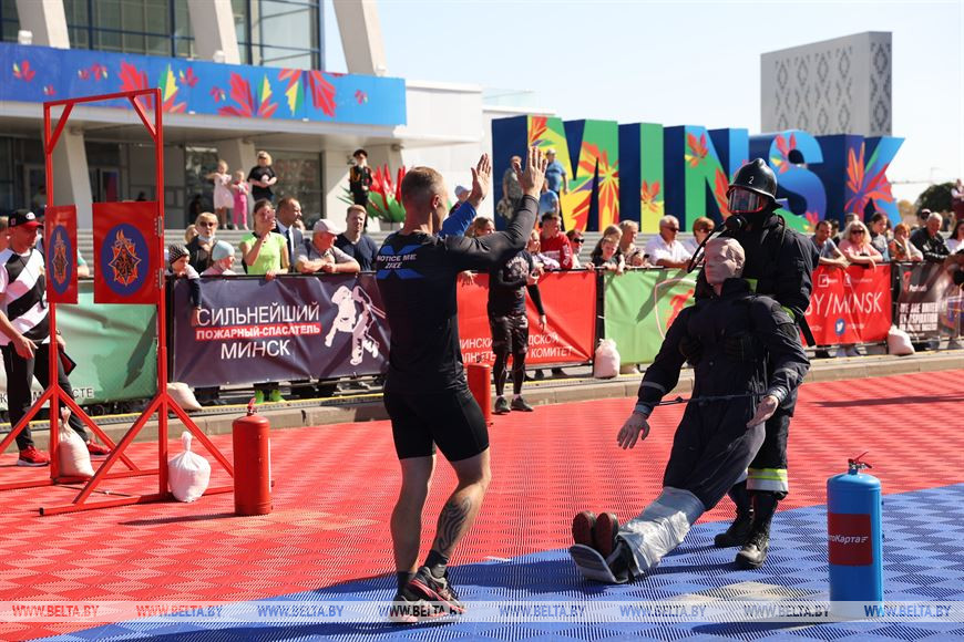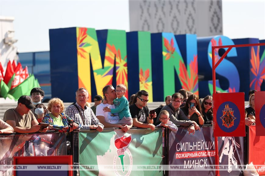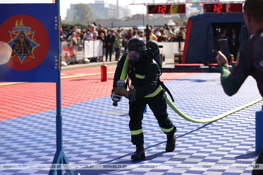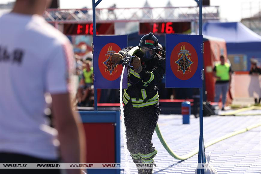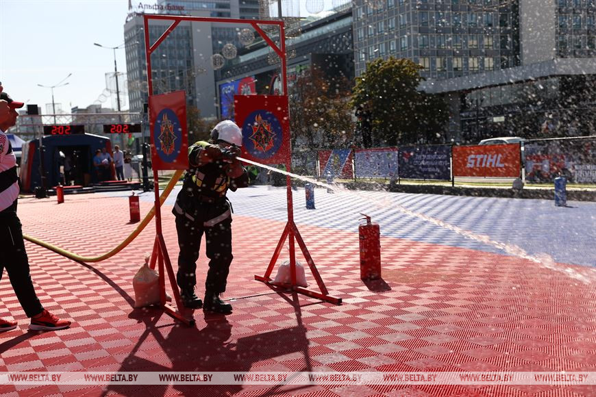 11 сентября, Минск /Корр. БЕЛТА/. Международные соревнования "Сильнейший пожарный-спасатель" прошли 11 сентября возле Дворца спорта.-0-