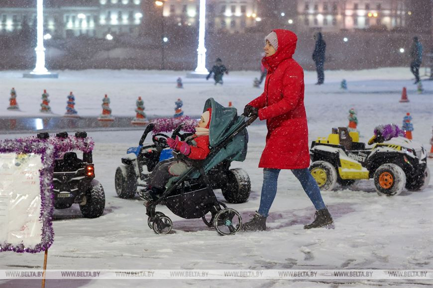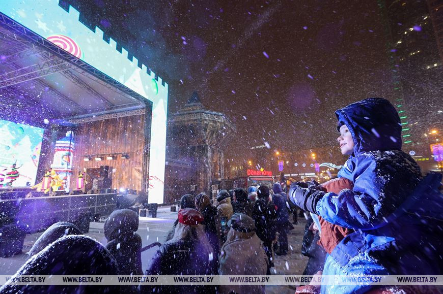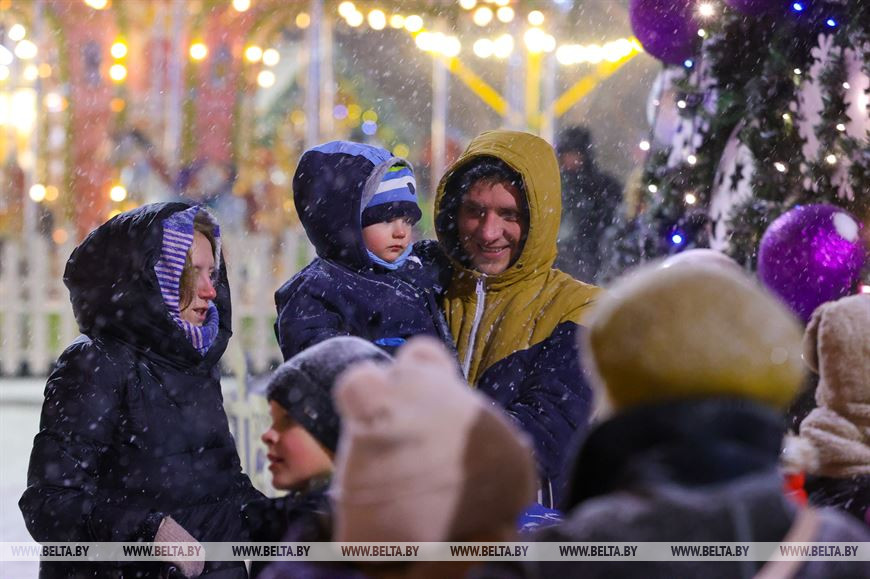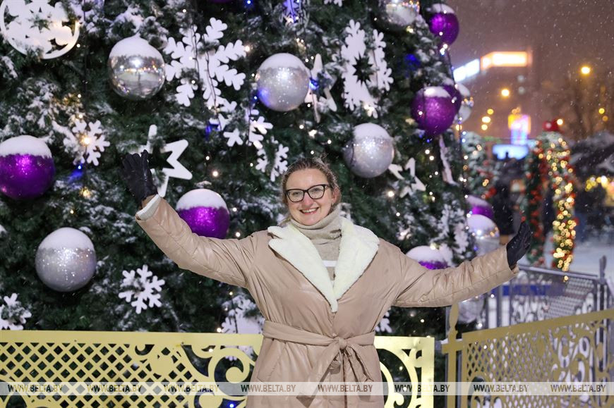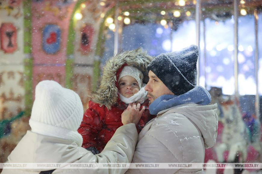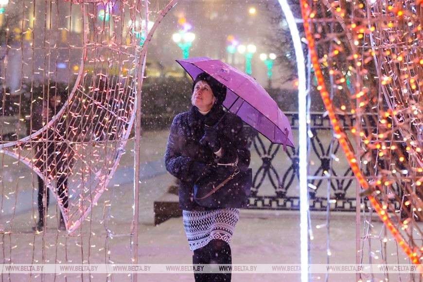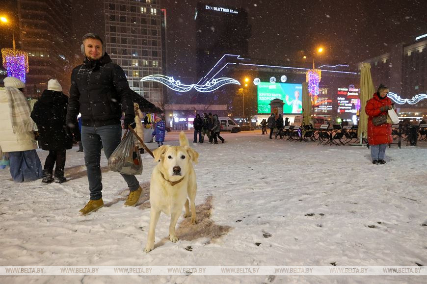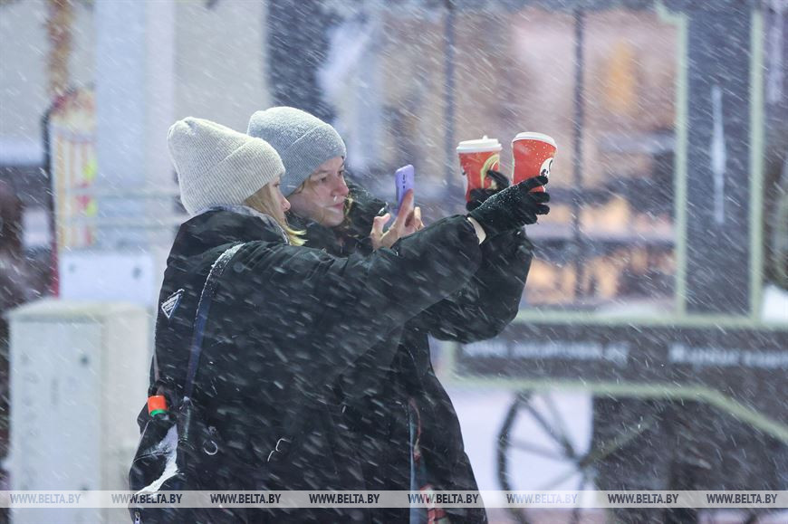26 декабря, Минск /Корр. БЕЛТА/. Снегопад, обрушившийся на столицу, только усилил ощущение приближающихся новогодних праздников у горожан. Минчане гуляют по нарядному городу, посещают рождественские ярмарки и делают фото на память.-0-