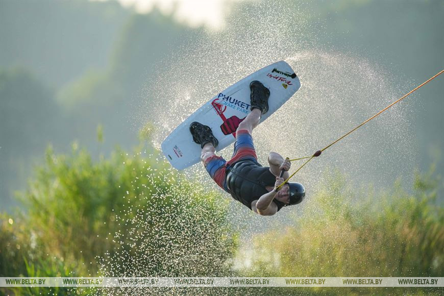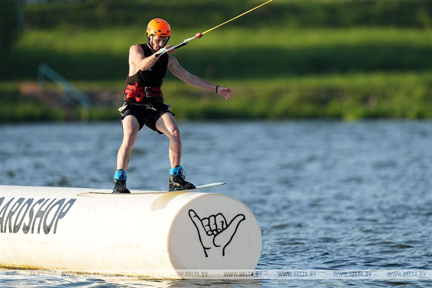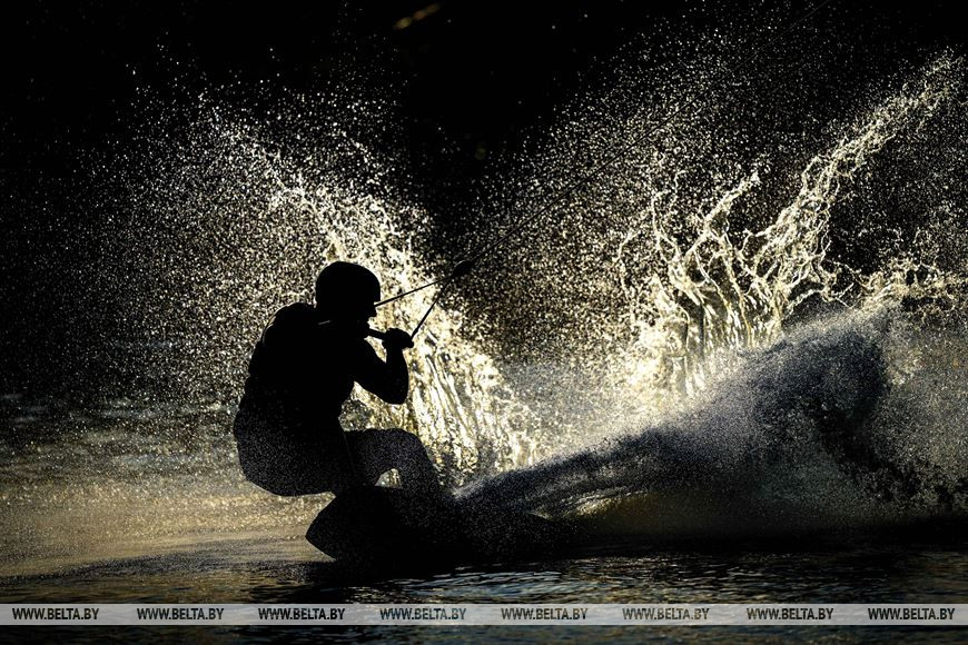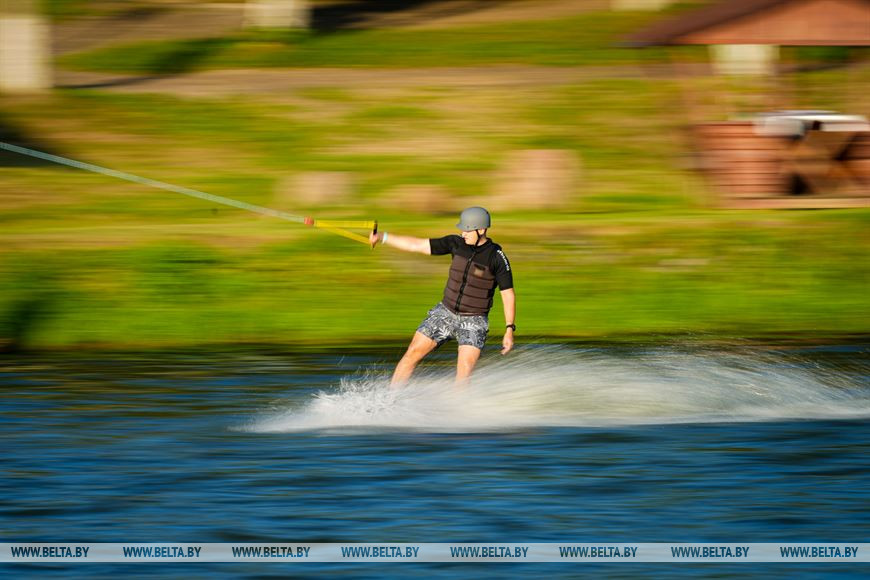 8 июля, Минск /Корр. БЕЛТА/. Теплая погода побудила многих вечером выехать на городские водохранилища, где можно не только позагорать и поплавать, но и заняться водными видами спорта, такими как вейкбординг.-0-
