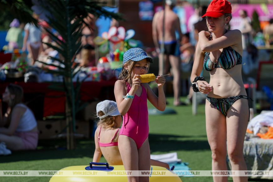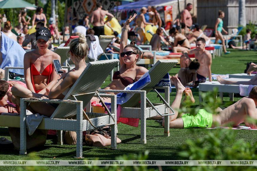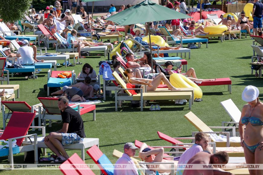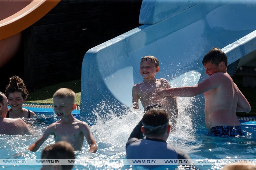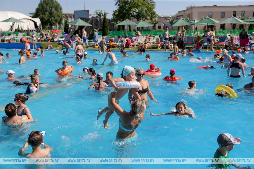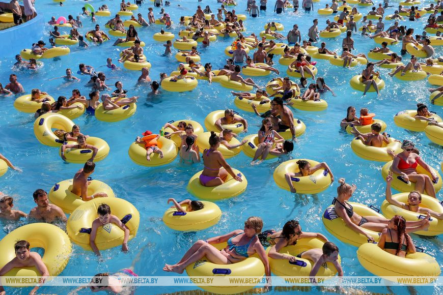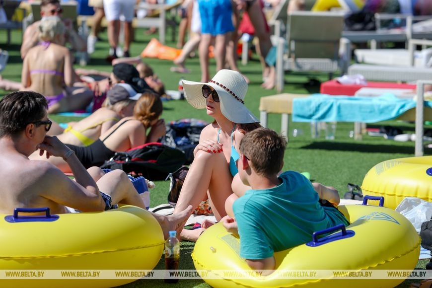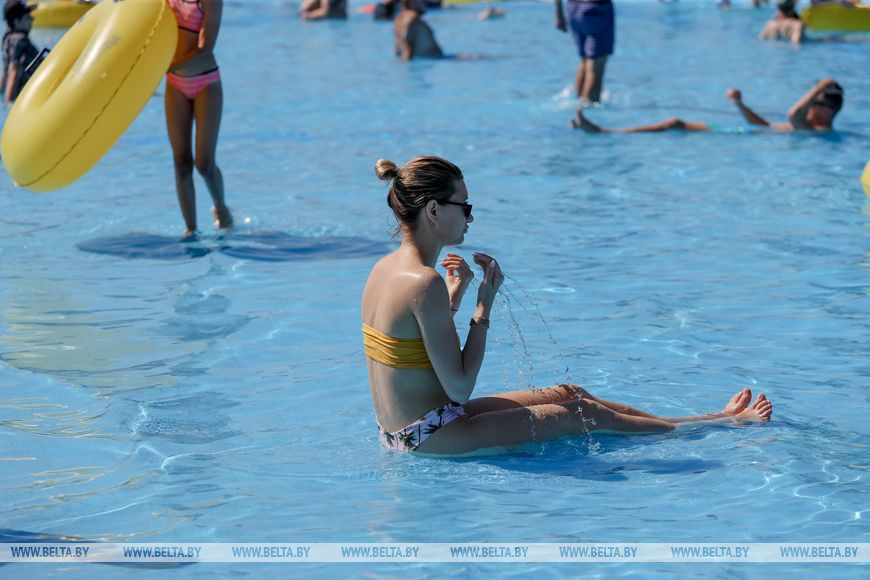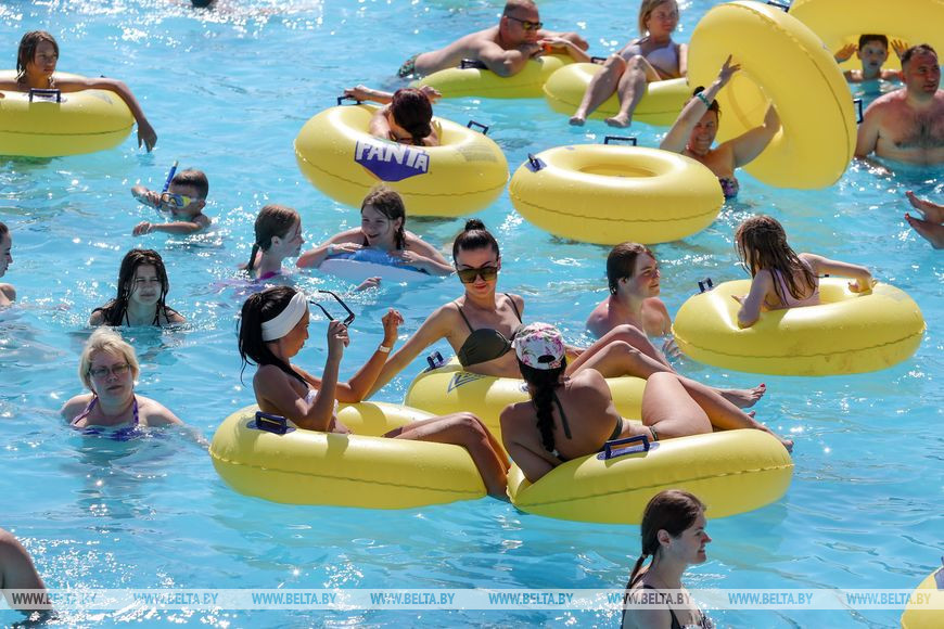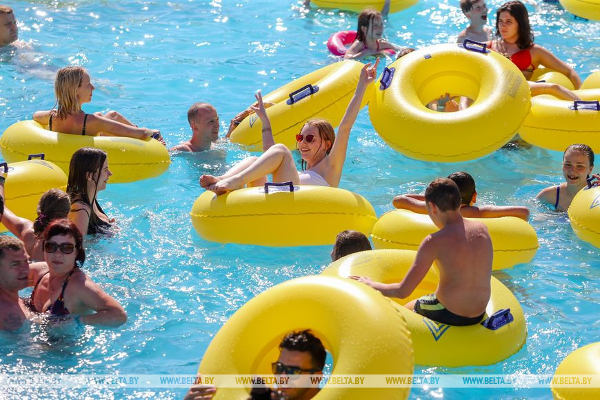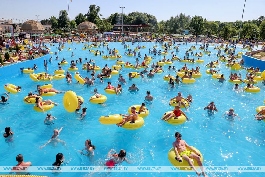 19 июня, Минск /Корр. БЕЛТА/. Минчане отдыхают в аквапарке в жаркую погоду. Оранжевый уровень опасности был объявлен в Беларуси на 19 июня из-за жары, сообщили в Республиканском центре по гидрометеорологии, контролю радиоактивного загрязнения и мониторингу окружающей среды Минприроды.-0-
