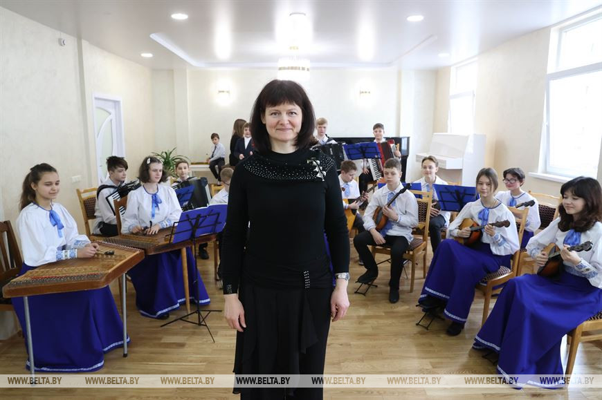 Руководитель образцового любительского коллектива Республики Беларусь оркестра народных инструментов Ирина Лосева во время репетиции