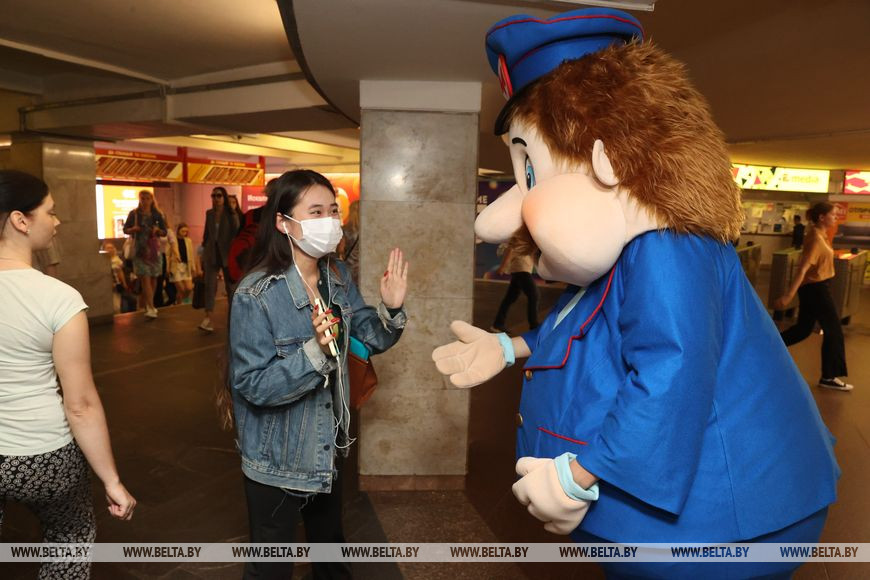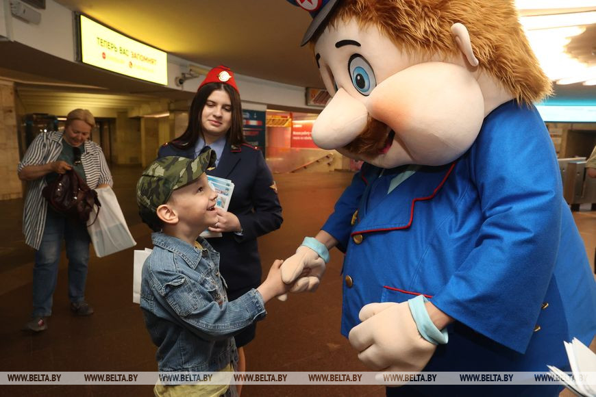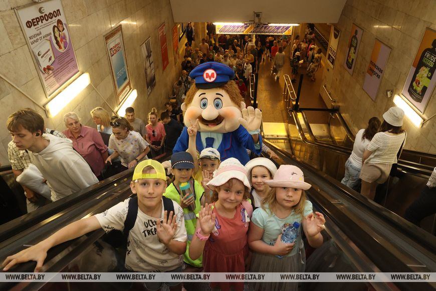 8 июня, Минск /Корр. БЕЛТА/. Минский метрополитен открывает акцию "Внимание: дети в метро!" в период начала летних каникул с целью научить детей и подростков соблюдать основные правила безопасного поведения в подземке. Это крайне важно, потому что уже с 7-летнего возраста ребенок имеет право совершать поездку в метро без сопровождения взрослых. И к этому его нужно обязательно подготовить. 8 июня на станции метро "Октябрьская" анимационный персонаж Метрович провел викторину на знание детьми и подростками правил безопасного поведения в метро. Дети получили красочные листовки с основными правилами поведения, сувениры и смогли сфотографироваться с добродушным Метровичем.-0-