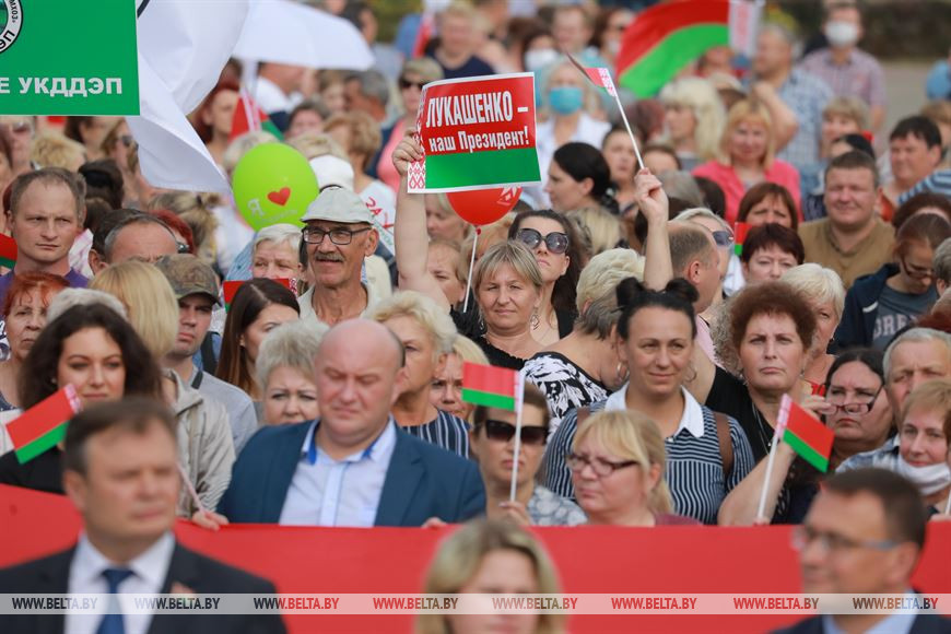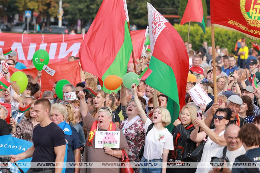 19 августа, Минск /Корр. БЕЛТА/. 19 августа в Бобруйске прошел митинг в поддержку мира, безопасности и спокойствия в Беларуси.-0-