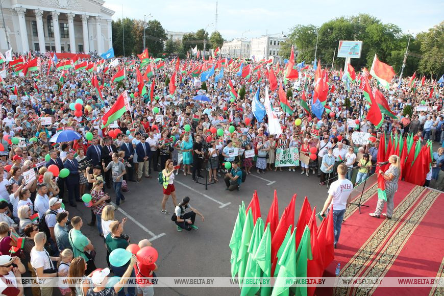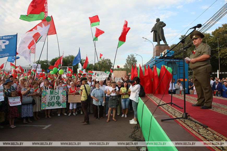 18 августа, Гомель /Корр. БЕЛТА/. 18 августа в Гомеле состоялся митинг в поддержку действующего Президента Республики Беларусь.-0-