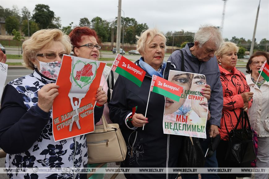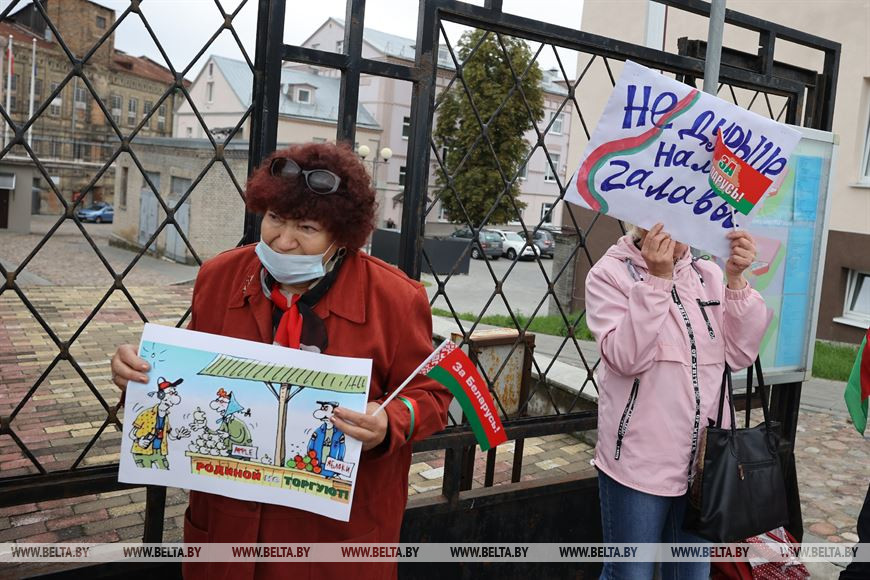"Беларусь - это наш дом. И мы разберемся сами, кто и как им должен управлять, - считает участница пикета, член ветеранской организации Октябрьского района Гродно Ирина Голайдо. - Всегда сравниваю нашу страну с большой семьей. Представить трудно, что будет, если в одну из семей придет человек извне и будет диктовать свои правила. Точно так же и с нашим государством".