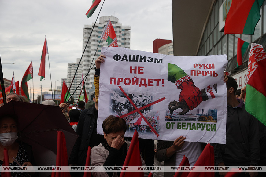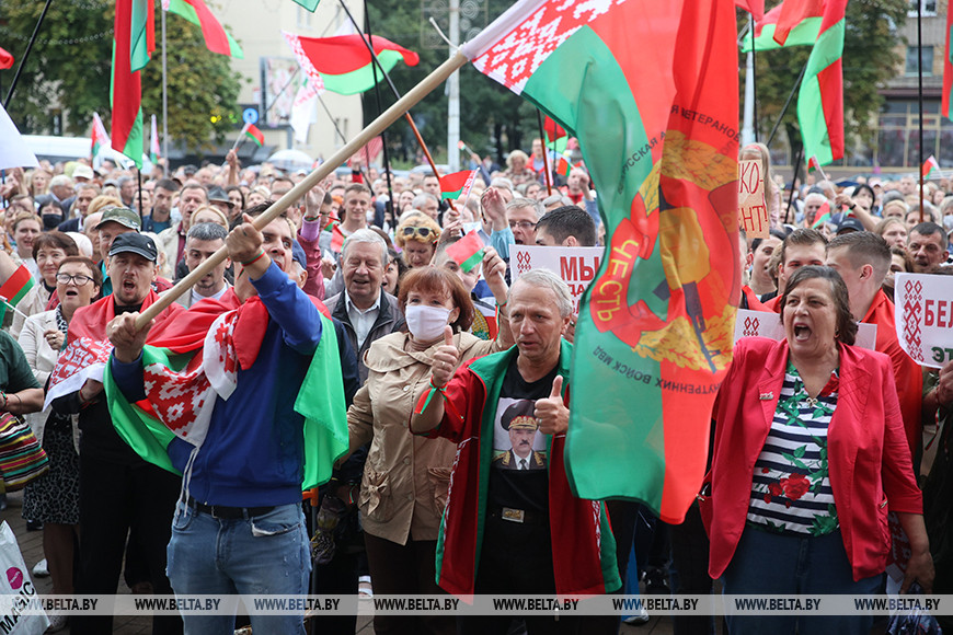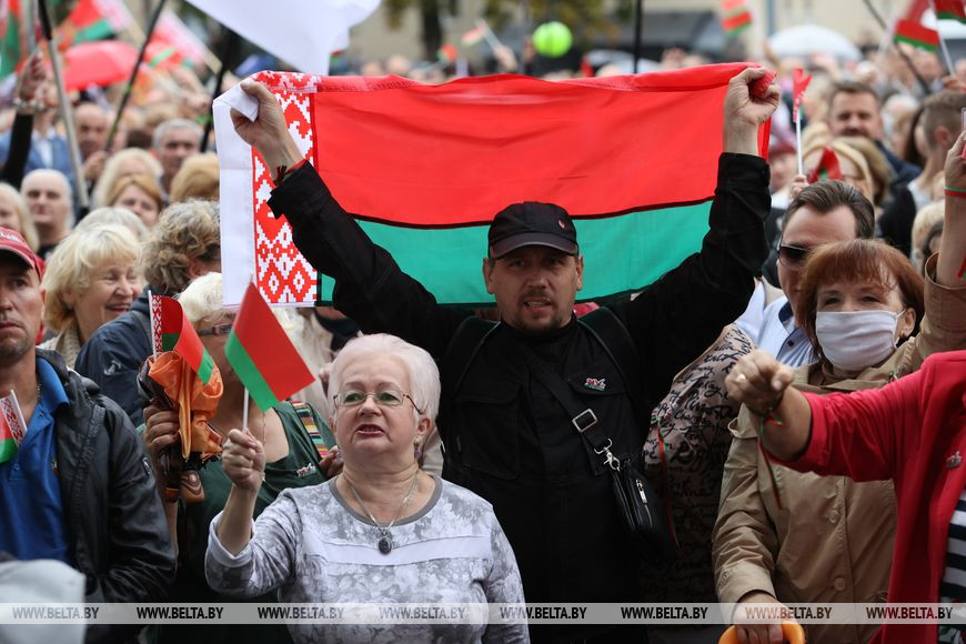 25 августа, Минск /Корр. БЕЛТА/. Митинг "За Беларусь!" прошел у Комаровского рынка в Минске.-0-