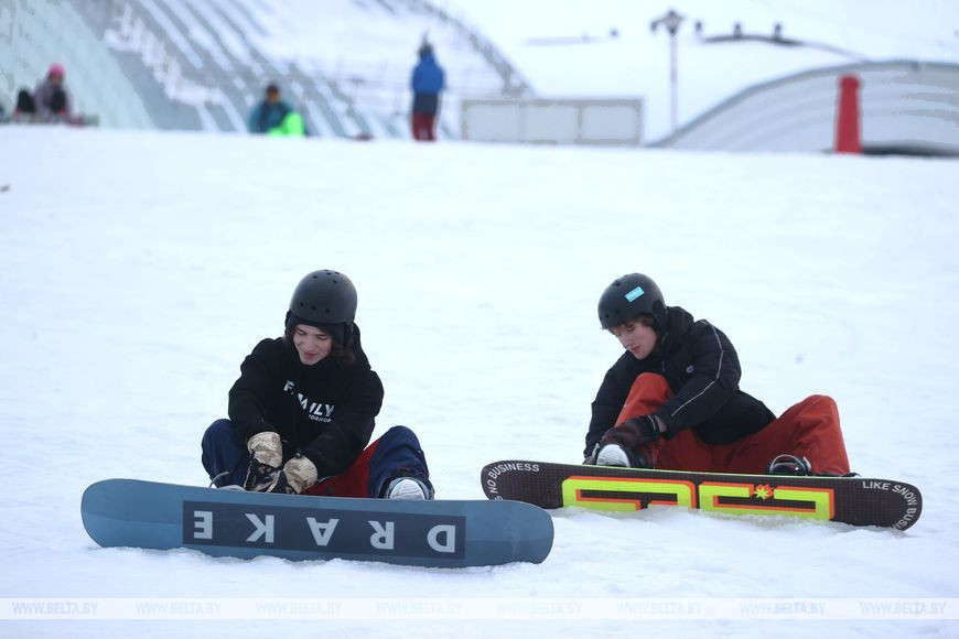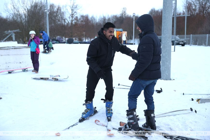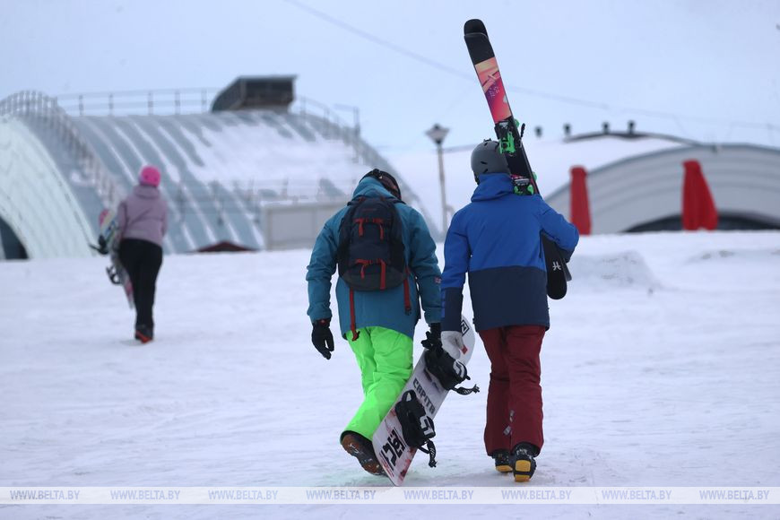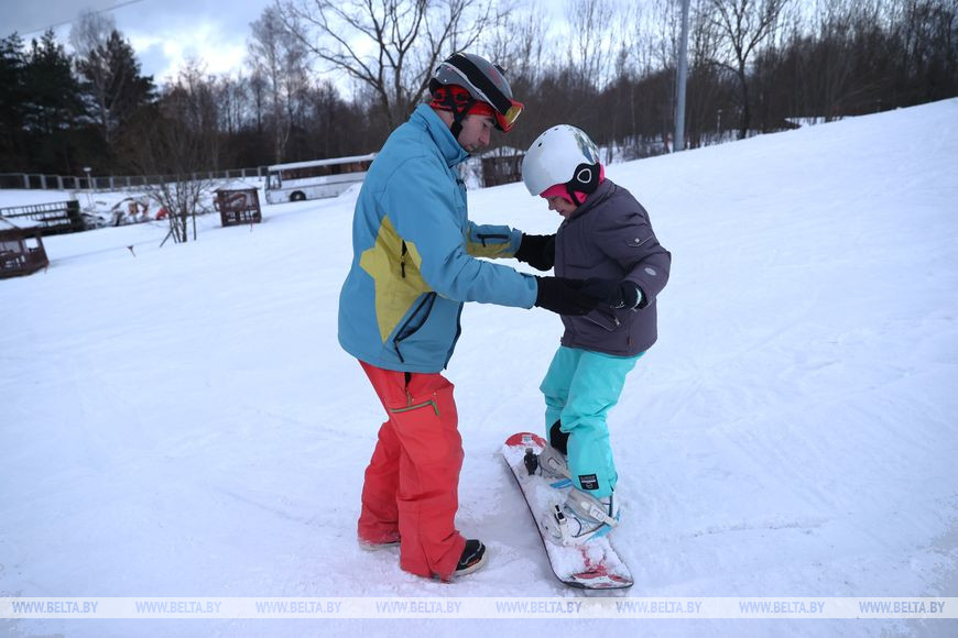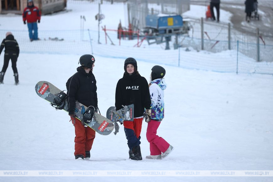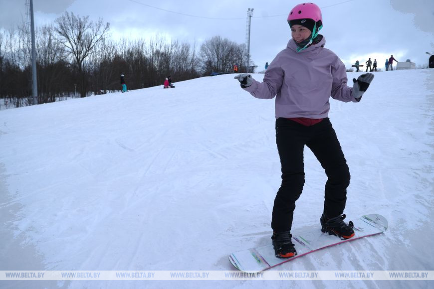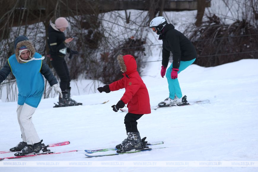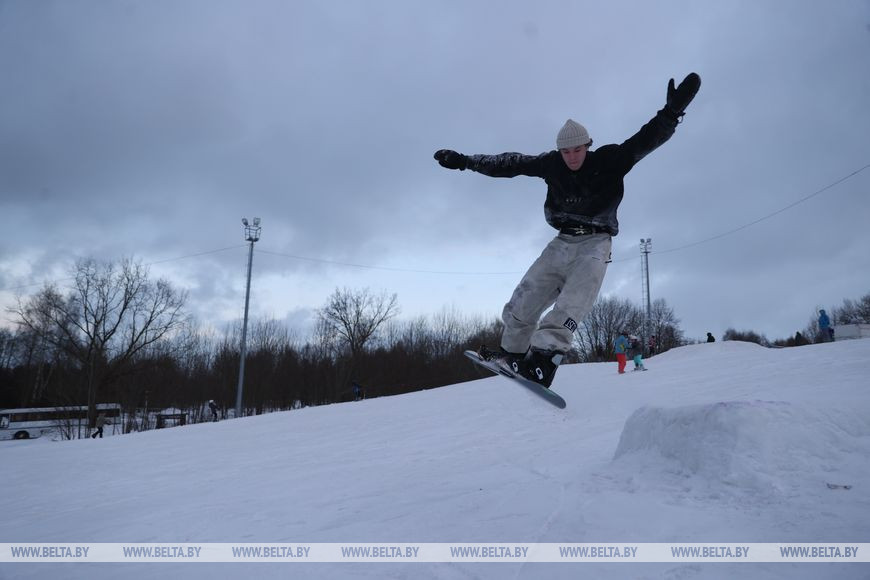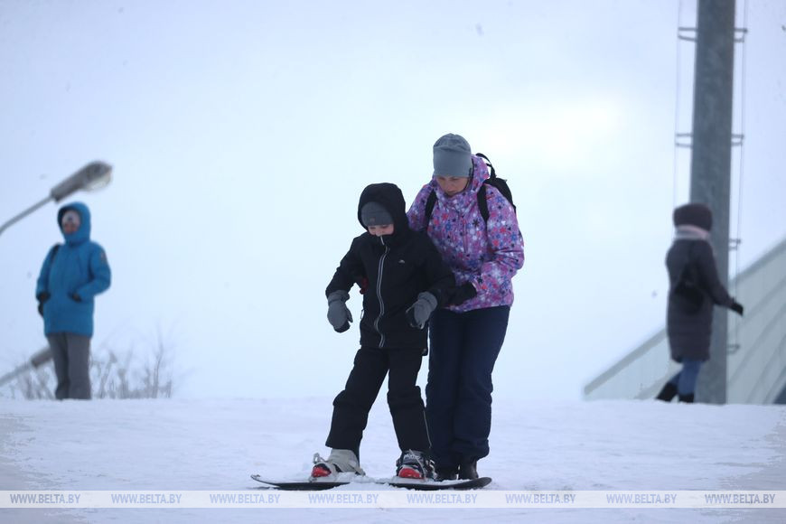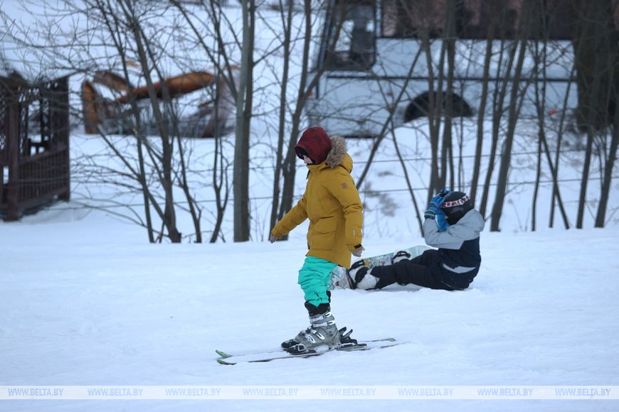5 февраля, Минск /Корр. БЕЛТА/. Многие жители Минска проводят зимние выходные в парке "Курасовщина", где можно покататься на лыжах и сноубордах.