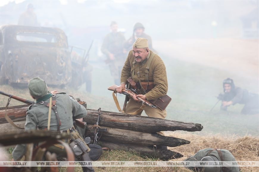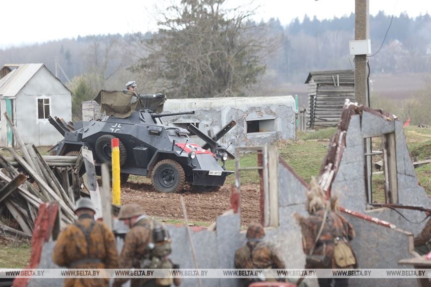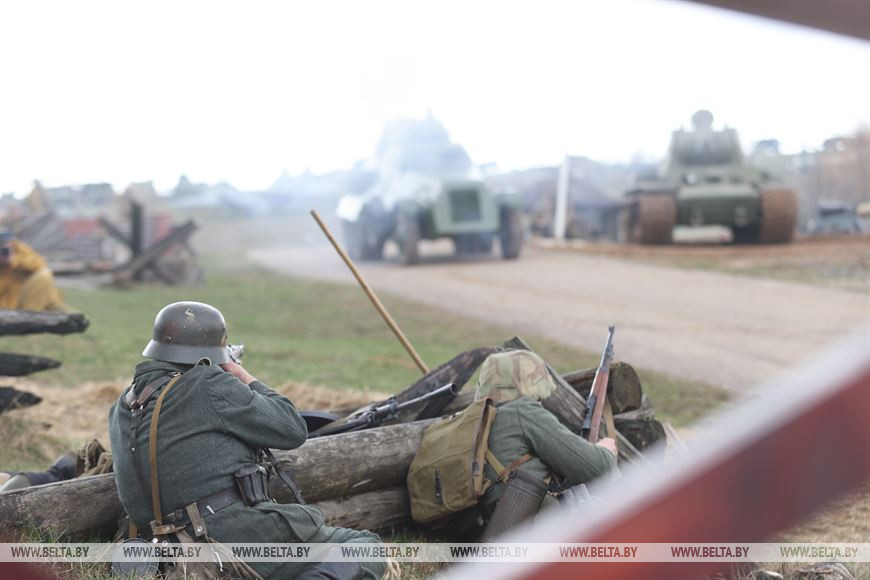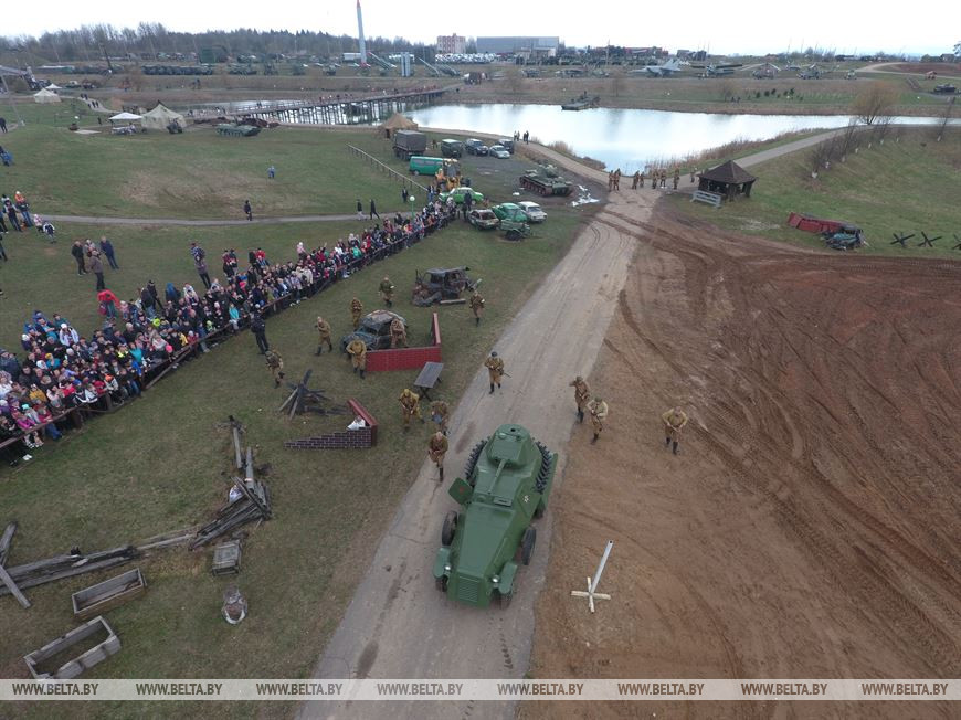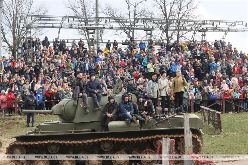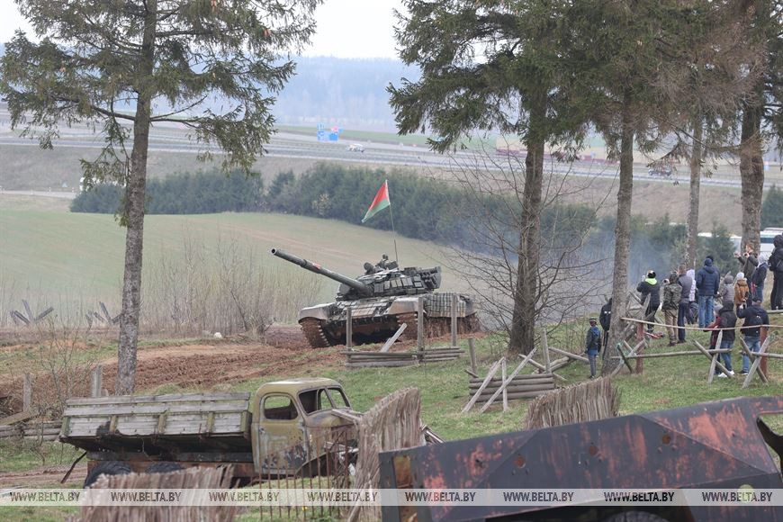 17 апреля, Минск /Корр. БЕЛТА/. В историко-культурном комплексе "Линия Сталина" при поддержке Министерства обороны Республики Беларусь прошла реконструкция Ржевско-Вяземской операции 1942 года и соревновательное шоу "Танковый биатлон Т-72". Для посетителей мероприятия также было открыто несколько интерактивных зон.-0-
