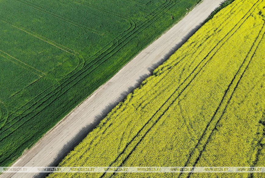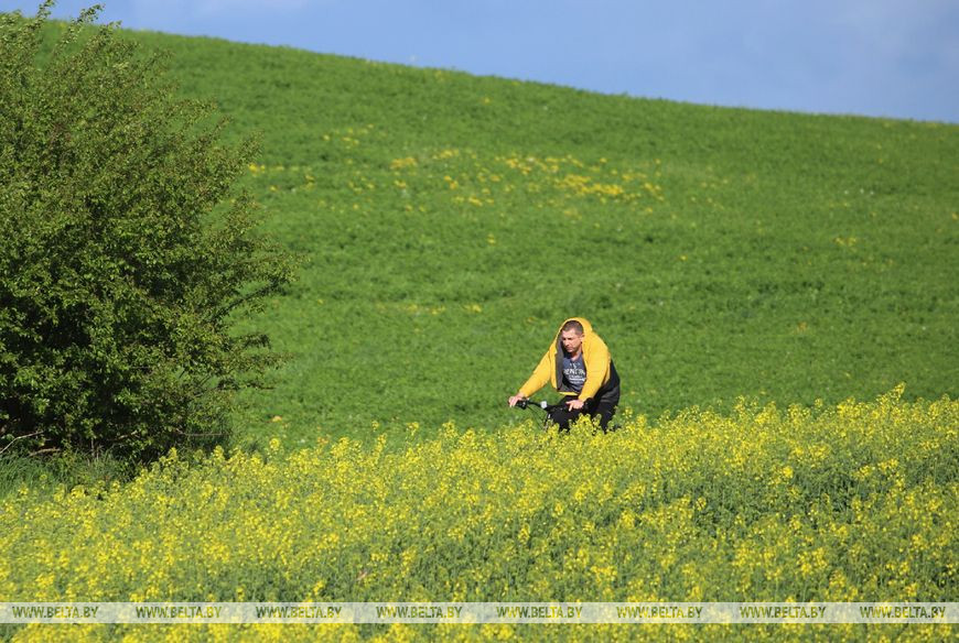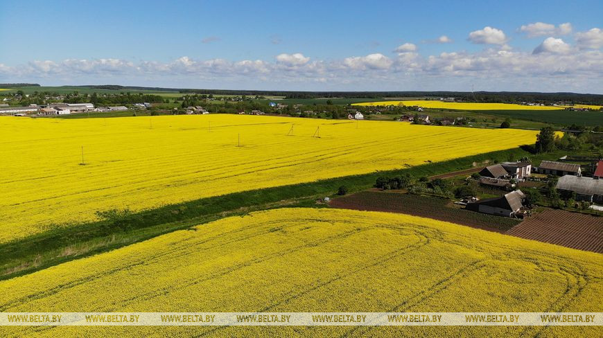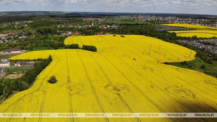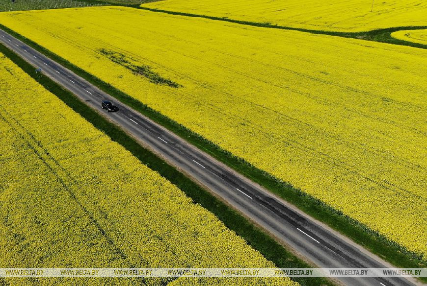 24 мая, Гродно /Корр. БЕЛТА/. Цветущий рапс на полях учебно-опытного СПК "Путришки" в Гродненском районе.-0-