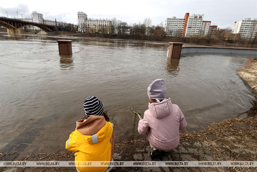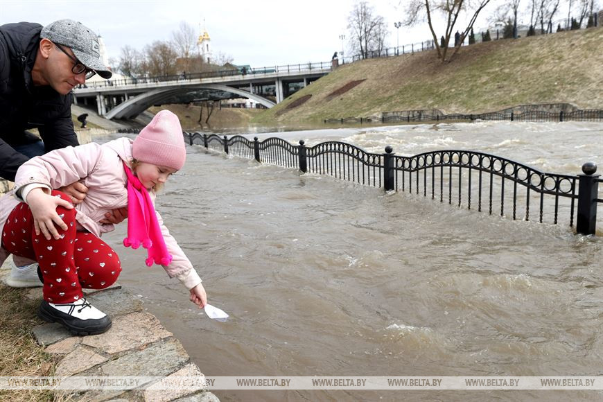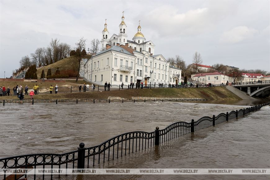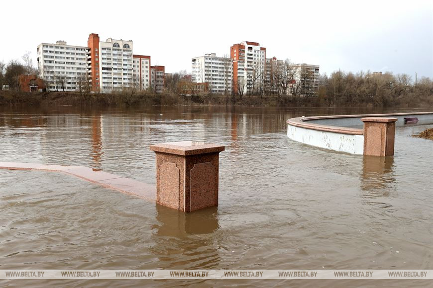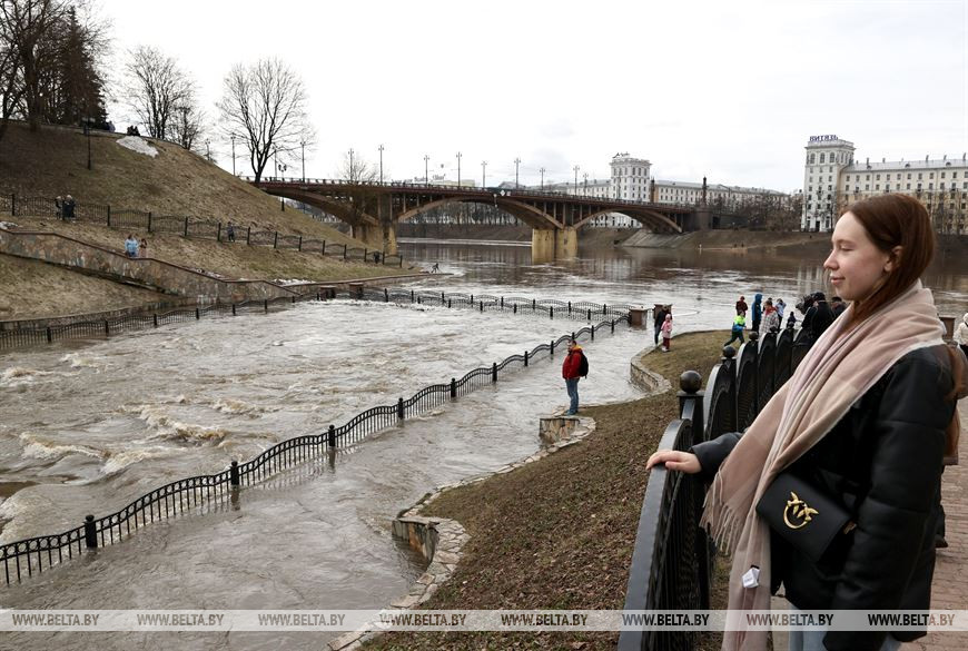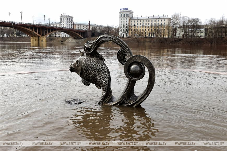 В центре Витебска возле драмтеатра имени Якуба Коласа подтопило набережную реки. Уровень воды в реке Западная Двина, по данным гидропоста в Витебске, составляет 649 cм над нулем поста. За прошедшие 24 часа уровень воды поднялся на 122 см.