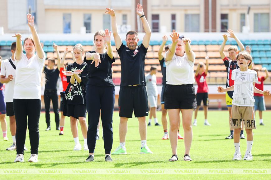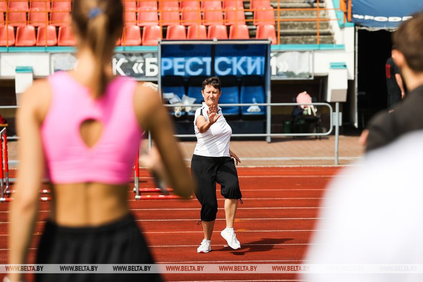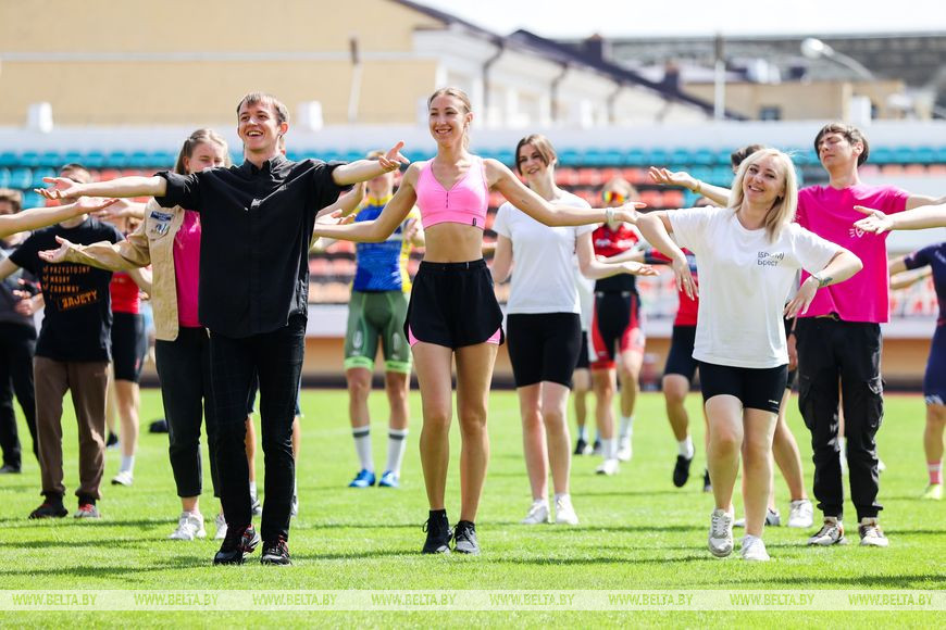 24 июня, Брест /Корр. БЕЛТА/. Около 150 человек стали участниками спортивного флешмоба "Народная зарядка", которая прошла на стадионе "Брестский" сегодня.-0-