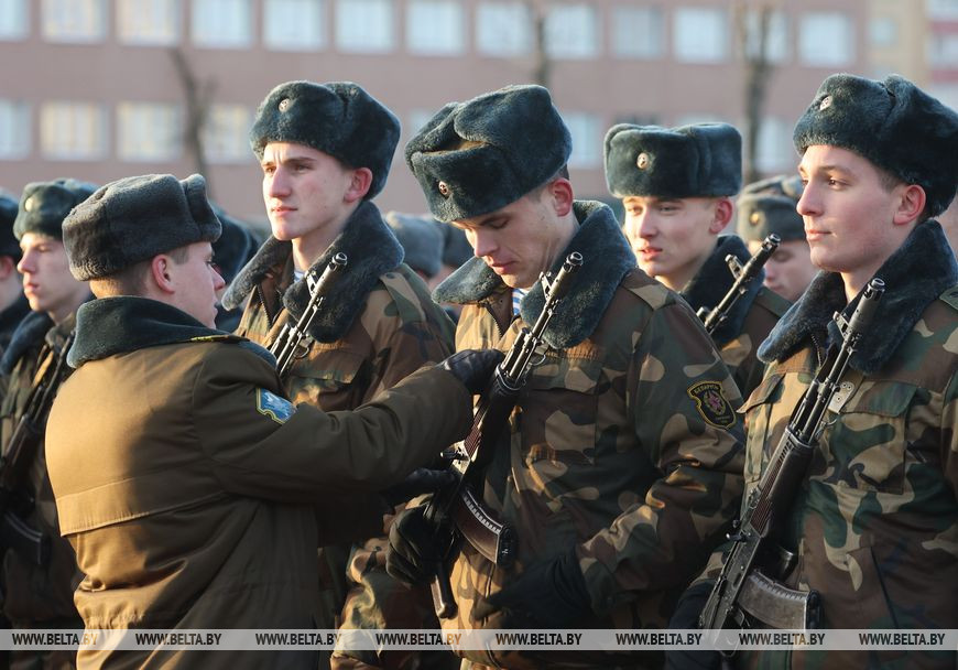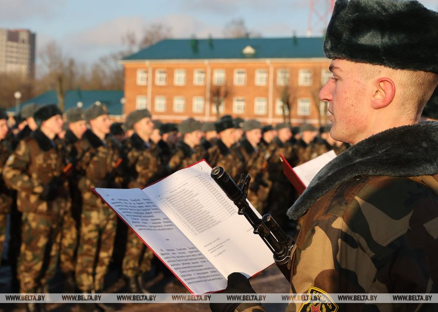 12 декабря, Витебск /Корр. БЕЛТА/. В Витебске 606 новобранцев 103-й отдельной гвардейской воздушно-десантной бригады приняли присягу.-0-