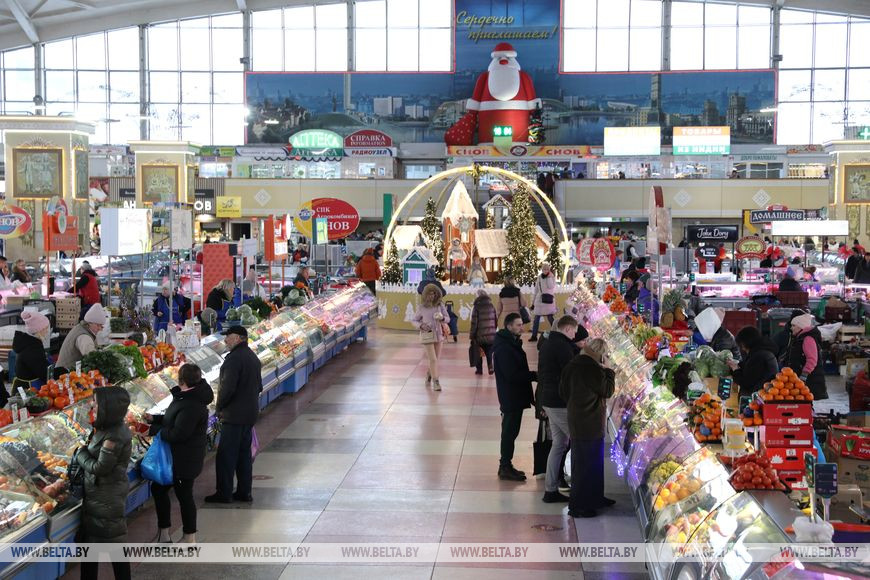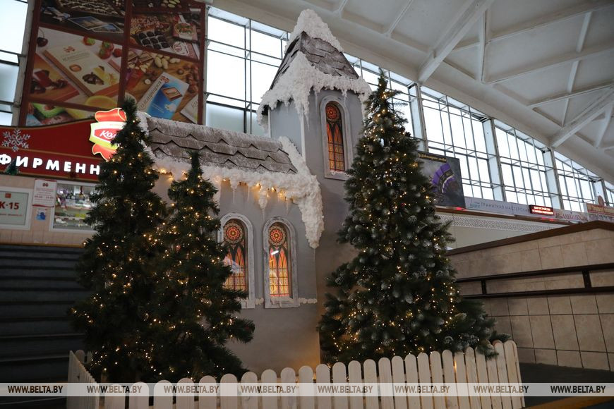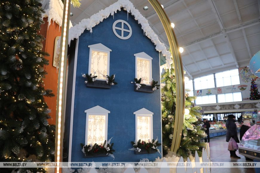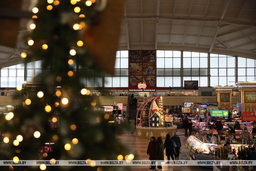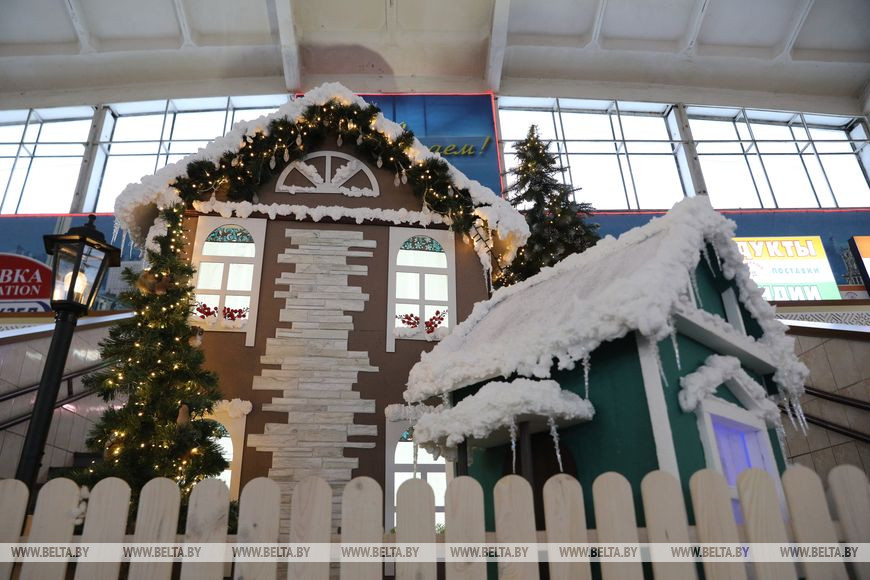 29 ноября, Минск /Корр. БЕЛТА/. Новогодние декорации установили на крытой части Комаровского рынка.-0-