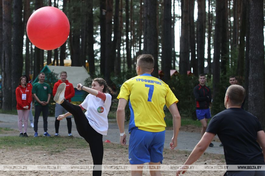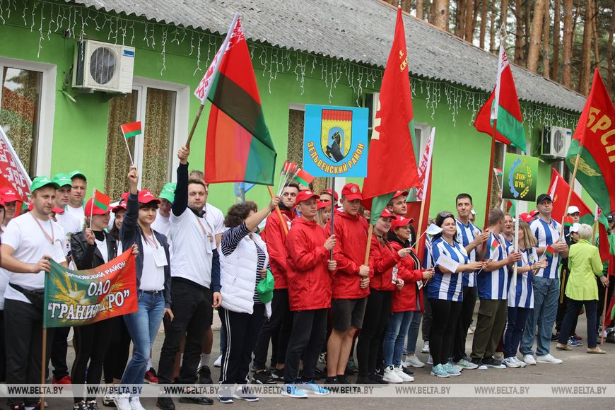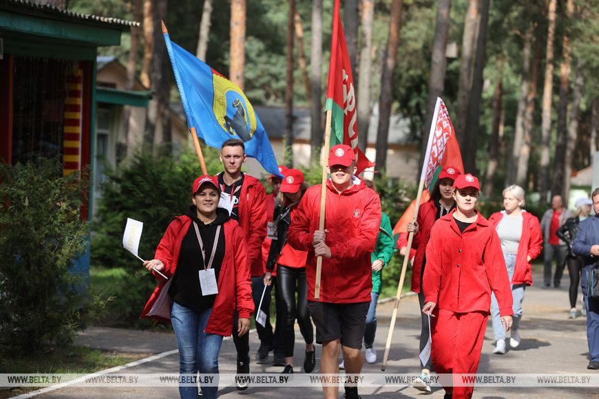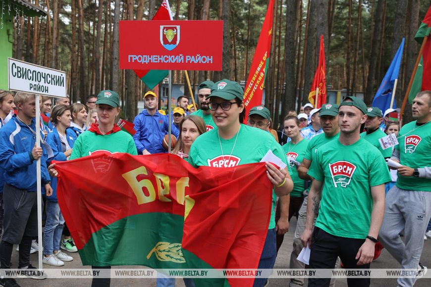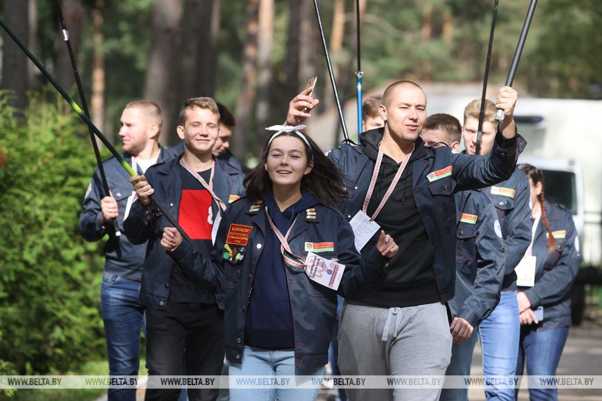 11 сентября, Гродно /Корр. БЕЛТА/. На Юбилейном озере под Гродно 11 сентября стартовал областной молодежный туристический слет. Основной локацией для двухдневного мероприятия стал оздоровительный лагерь "Зорька юбилейная". Участие в слете принимают команды территориальных комитетов БРСМ, в составе которых работающая и студенческая молодежь. Кроме того, к слету присоединились команда заместителей председателей райисполкомов, курирующих социальную сферу, и участники стилизованного железнодорожного состава республиканского молодежного поезда "#Беларусь. Моладзь. Натхненне".