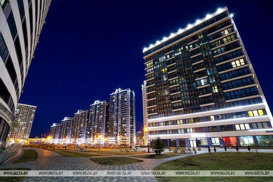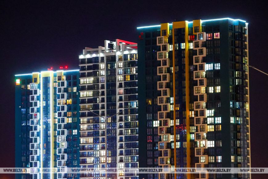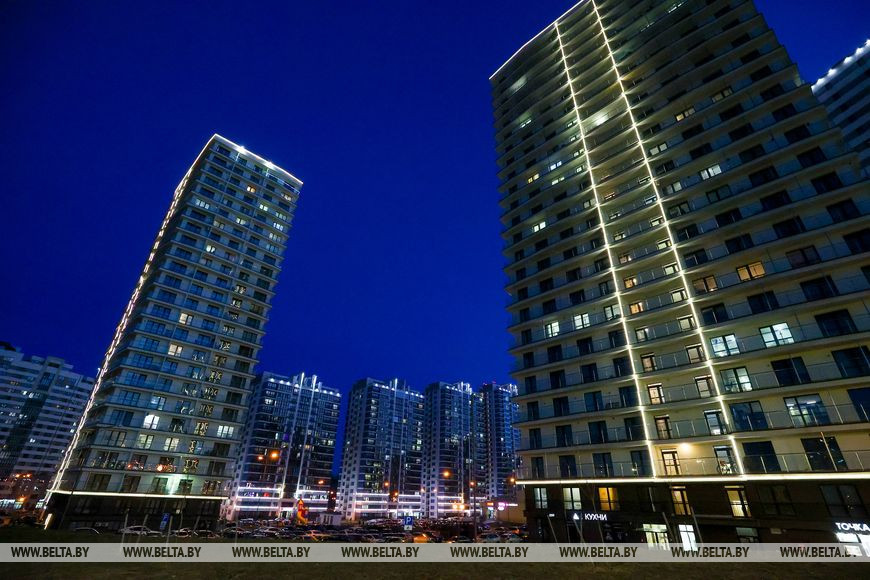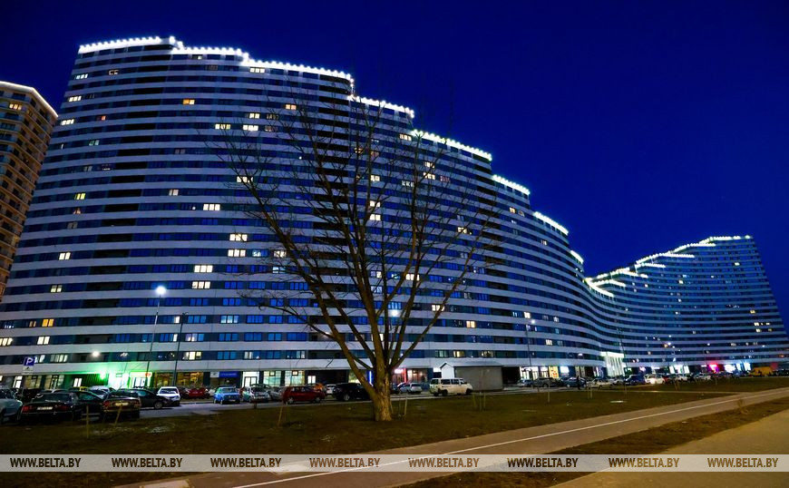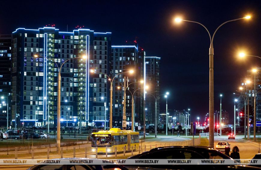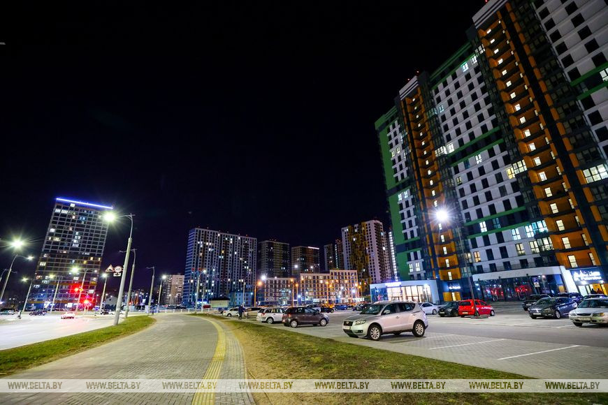 19 марта, Минск /Корр. БЕЛТА/. Новый район, построенный на месте первого аэропорта в столице, радует минчан яркими огнями.-0-