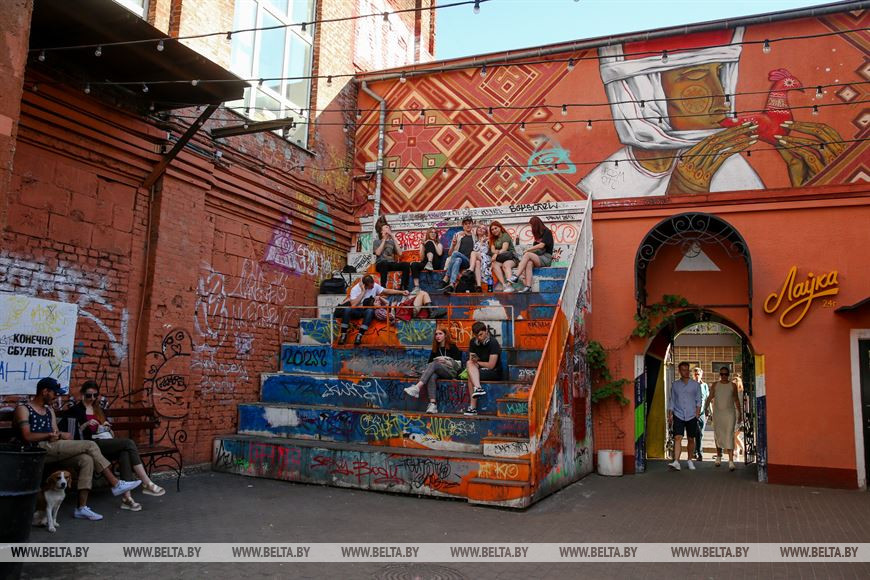 19 июля, Минск /Корр. БЕЛТА/. Октябрьская улица - популярное место отдыха минчан и гостей столицы. Мингорисполком скорректировал план застройки улицы. Здания бывшего дрожжевого, металлообрабатывающего и кожевенного заводов будут отреставрированы для организации постоянных и временных музейно-выставочных экспозиций, творческих мастерских (студий) художников и артистов, объектов сопутствующего обслуживания туристов и посетителей формируемого культурного центра по ул.Октябрьской.-0-