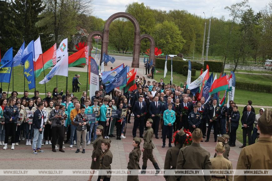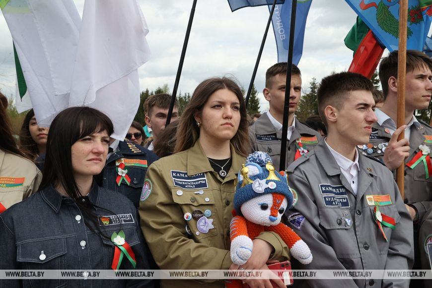14 мая, Могилев /Корр. БЕЛТА/. 14 мая на территории мемориального комплекса защитникам Могилева "Буйничское поле" состоялось республиканское открытие трудового семестра 2022. В мероприятии приняли участие представители студотрядовского движения из всех регионов страны – бойцы, командиры, комиссары студенческих отрядов, руководители трудовых проектов, ветераны движения, почетные гости.-0-