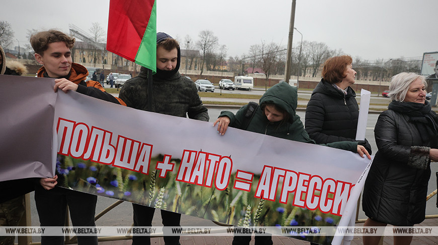 24 февраля, Гродно /Корр. БЕЛТА/. Союз поляков в Беларуси организовал пикет возле здания генконсульства Польши в Гродно против политики официальной Варшавы. Люди требуют свободного перемещения между странами и открытия границы польской стороной.-0-