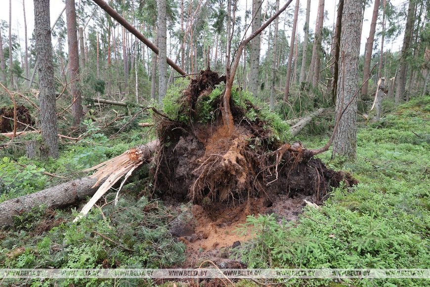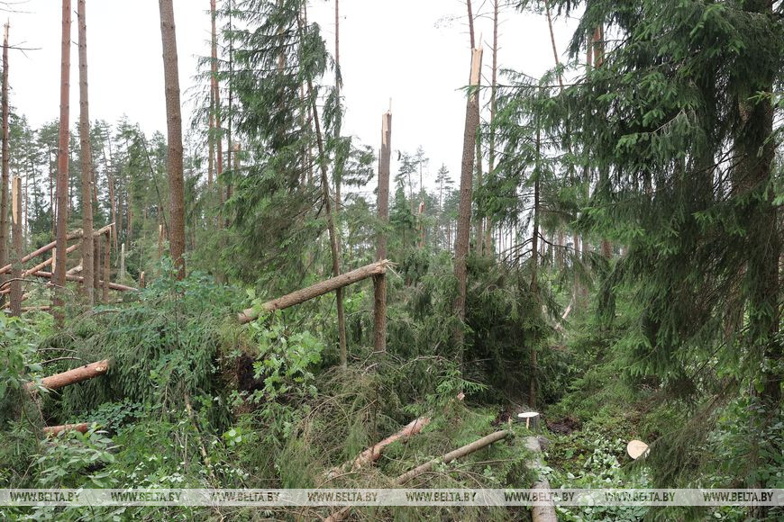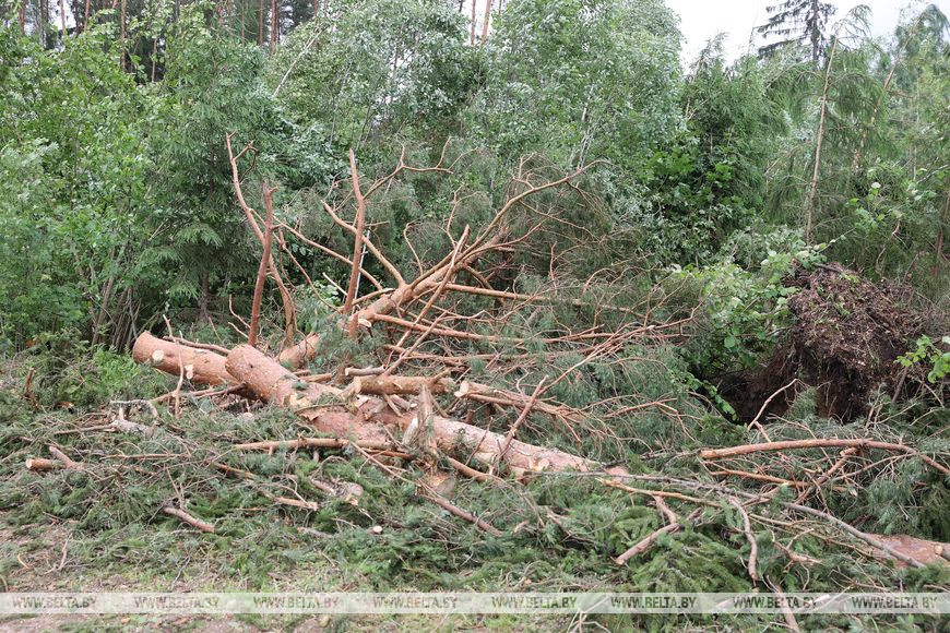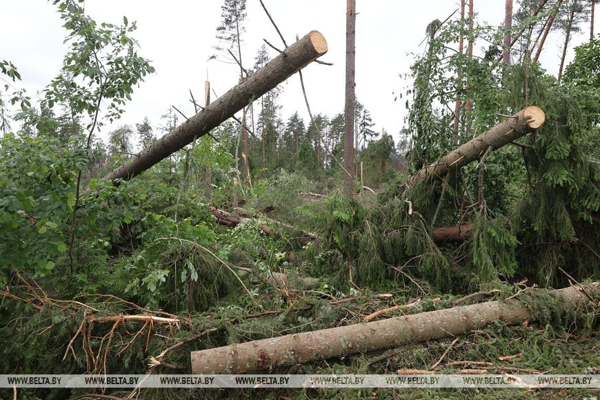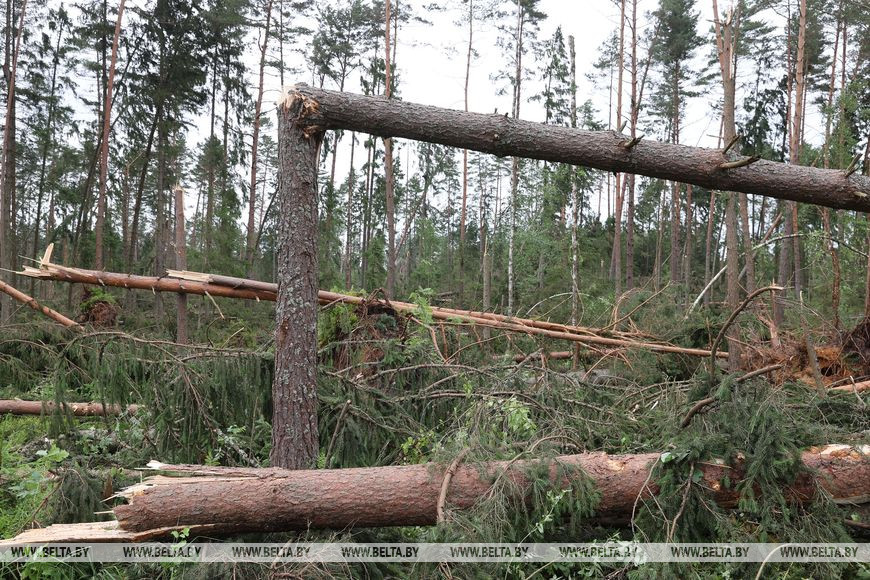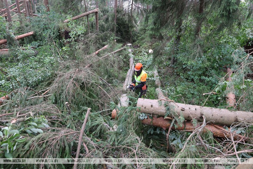 28 июня, Витебск /Корр. БЕЛТА/. Последствия урагана на площади 70 га в Николаевском лесничестве ликвидируют специалисты Шумилинского лесхоза.-0-