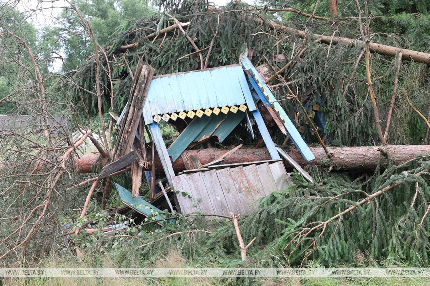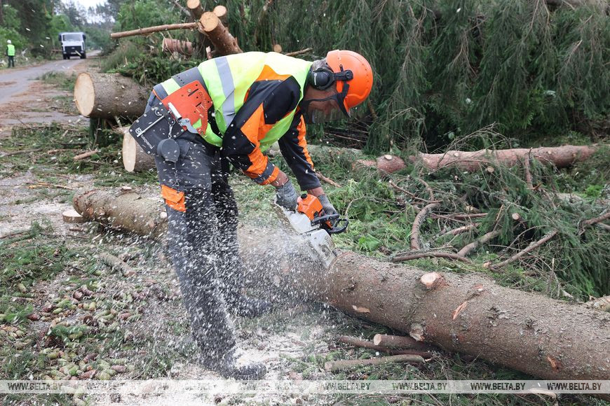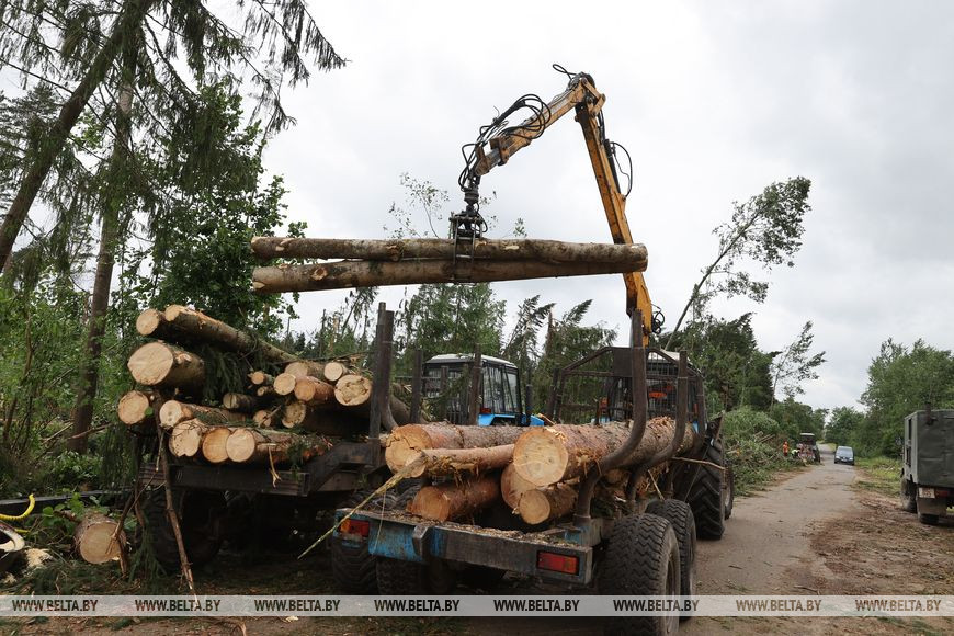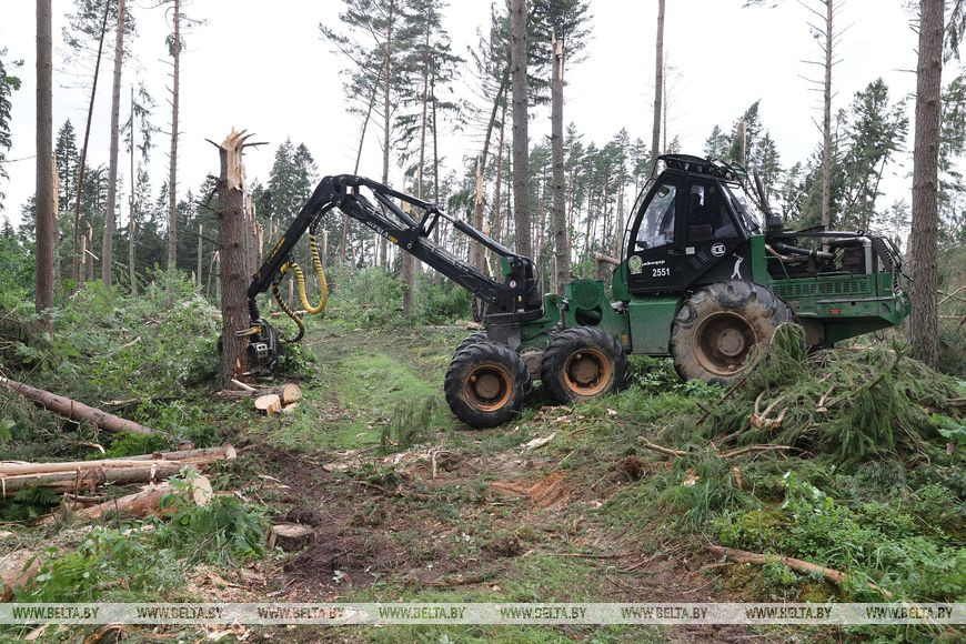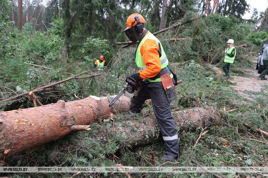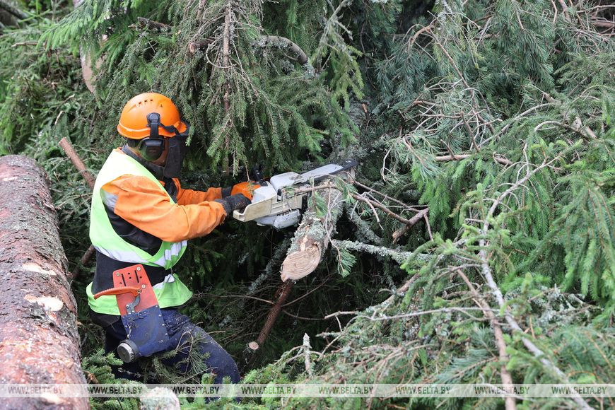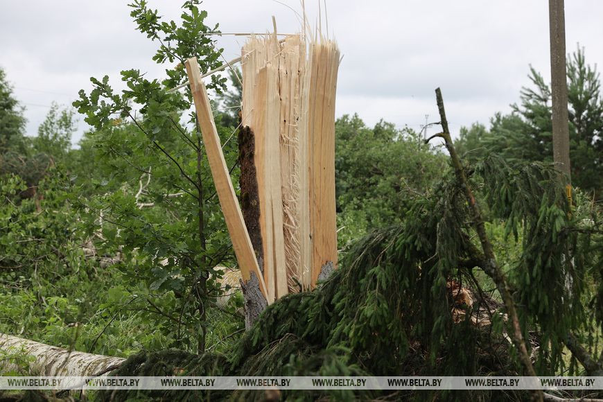 28 июня, Витебск /Корр. БЕЛТА/. Последствия урагана на площади 70 га в Николаевском лесничестве ликвидируют специалисты Шумилинского лесхоза.-0-