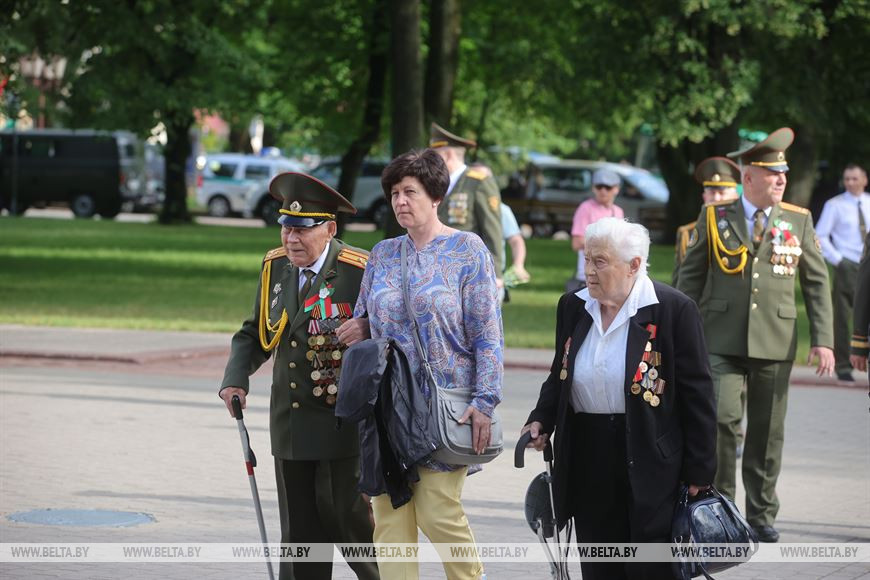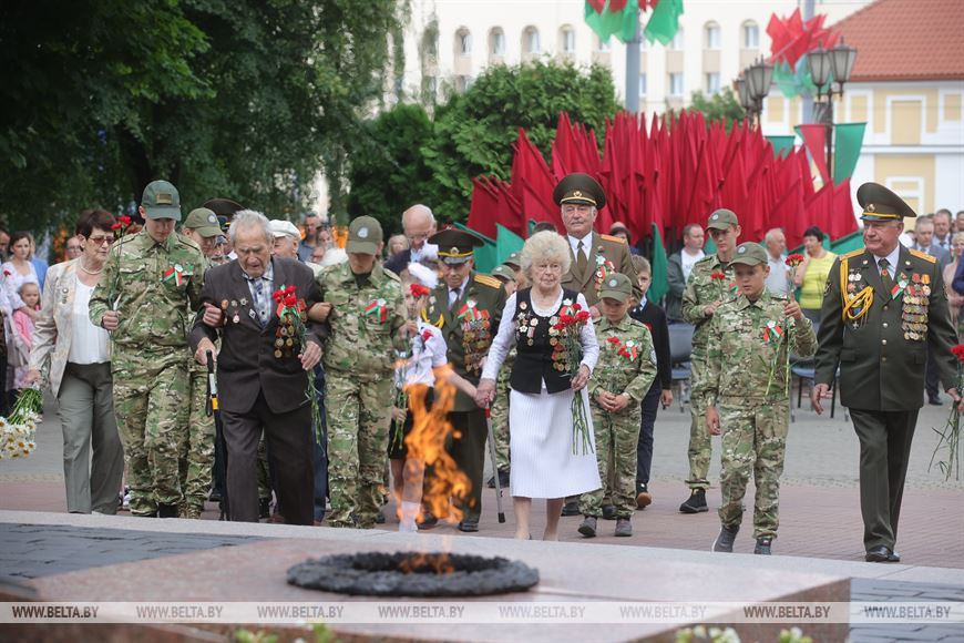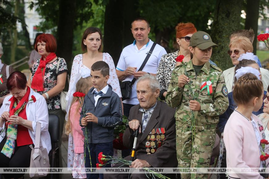 2 июля, Гродно /Корр. БЕЛТА/. Праздничные мероприятия в Гродно начались с церемонии возложения венков и цветов к памятнику воинам и партизанам в парке Жилибера.-0-