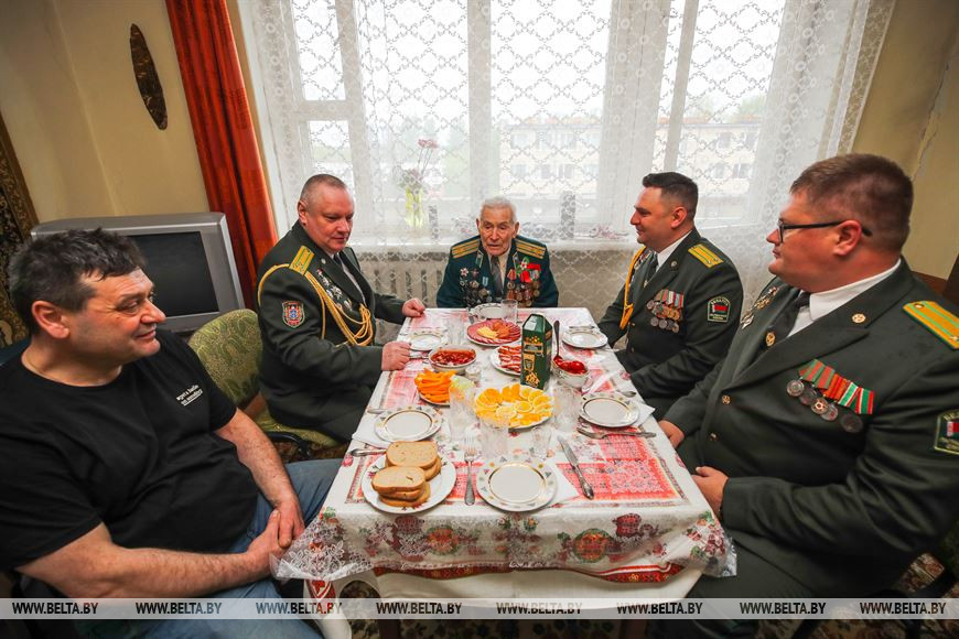 7 мая, Брест /Корр. БЕЛТА/. 7 мая в Бресте в преддверии празднования Дня Победы представители Брестской Краснознаменной пограничной группы им. Ф.Э. Дзержинского поздравили ветерана Великой Отечественной войны и органов пограничной службы Николая Мельника.-0-