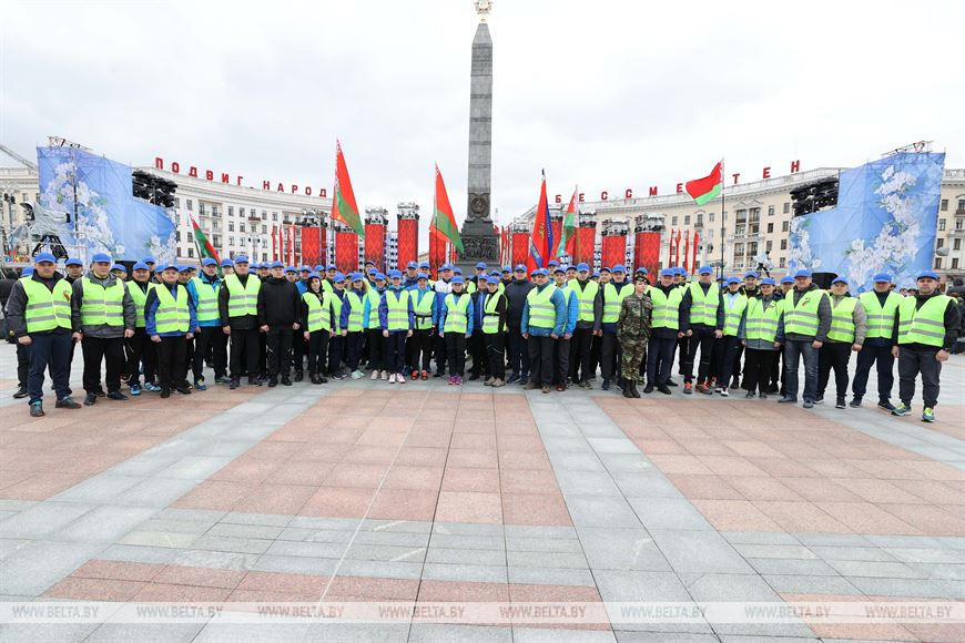 В нем приняли участие более 100 человек - руководители, работники центрального аппарата, а также структурных подразделений, расположенных в Минске и Минской области. Возглавил колонну министр по чрезвычайным ситуациям Вадим Синявский.