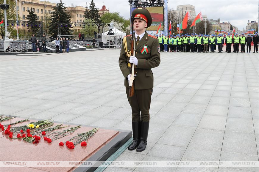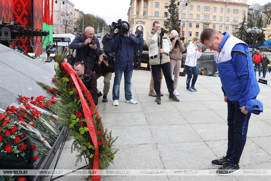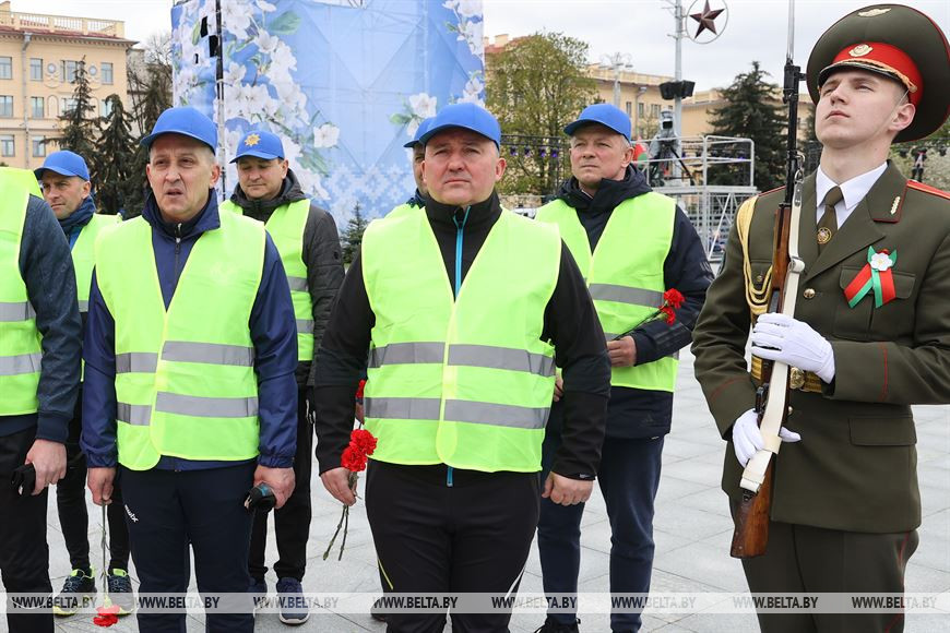Завершился велопробег на площади Победы - символе патриотизма и самоотверженности белорусского народа, - где в рамках акции "Беларусь помнит. Помним каждого" также были возложены цветы и отдана дань памяти подвигам и судьбам тех, кто внес свой вклад в освобождение страны и Великую Победу.-0-