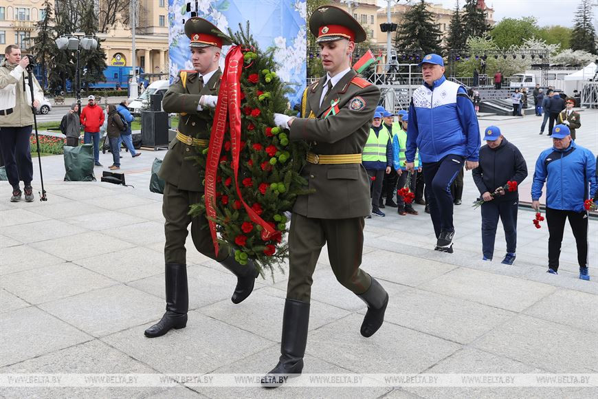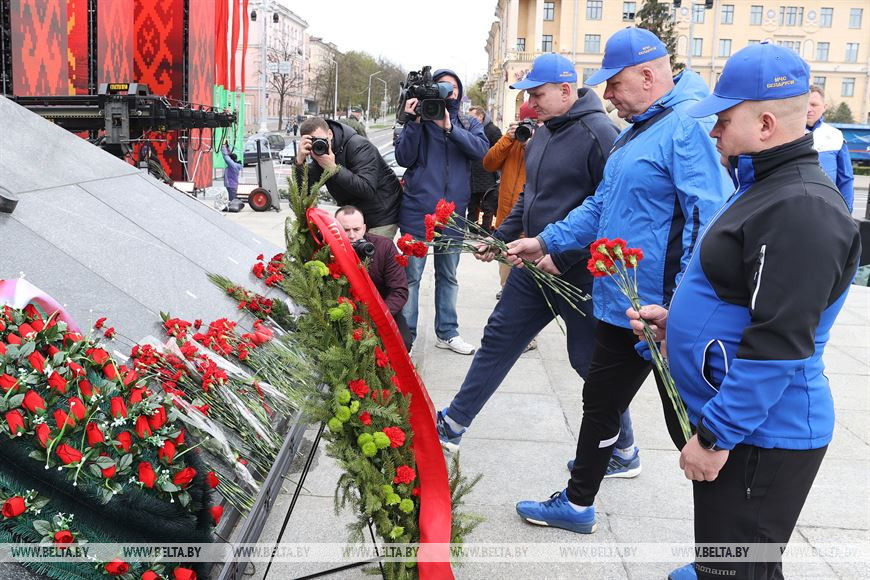 Начальной точкой мероприятия стал Курган Славы, где прошел митинг с возложением цветов. После этого был дан старт велопробегу. В рамках маршрута было сделано 2 остановки: у братской могилы советских воинов в деревне Королев Стан и у братской могилы погибших 30 тыс. военнопленных и гражданских в годы ВОВ на въезде в Минск, где работники МЧС возложили цветы и почтили память павших минутой молчания. Затем к колонне присоединились юные спасатели города Минска.