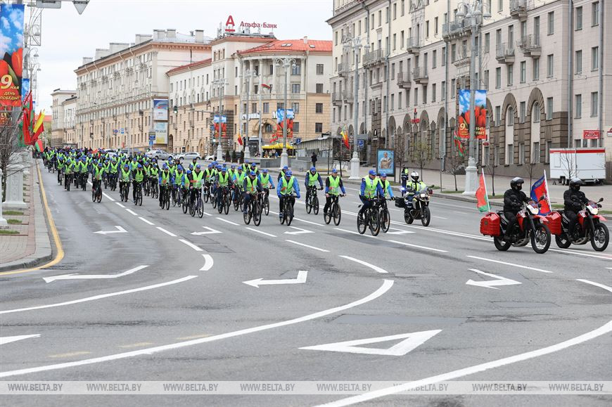 8 мая, Минск /Корр. БЕЛТА/. Организованный работниками МЧС велопробег, который приурочен к 76-й годовщине Победы в Великой Отечественной войне, прошел в Минске. Об этом БЕЛТА сообщили в пресс-службе МЧС.