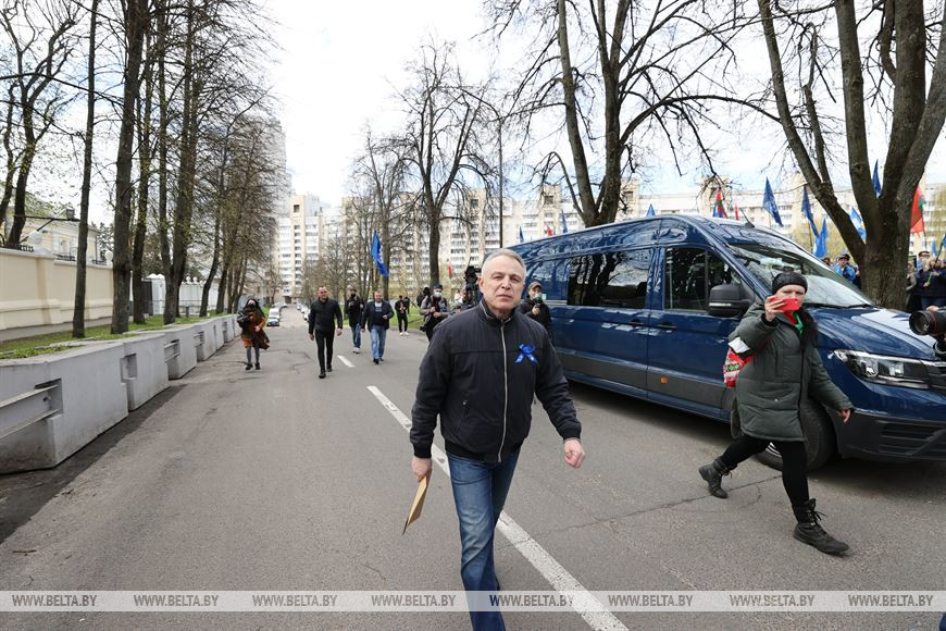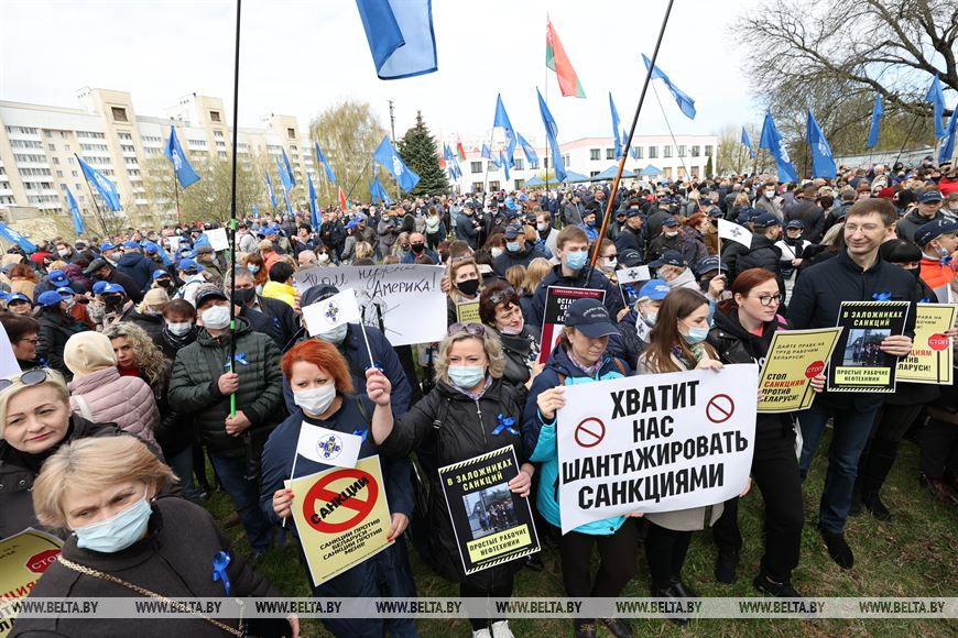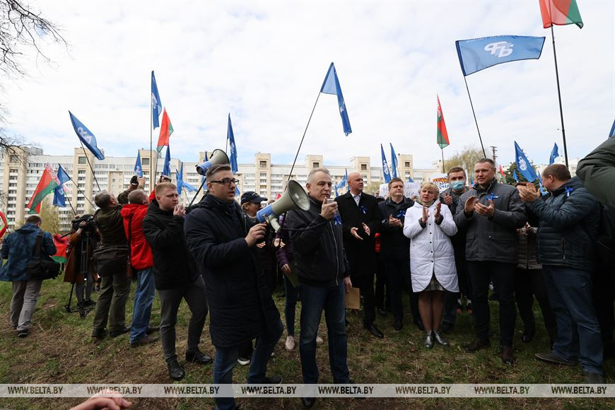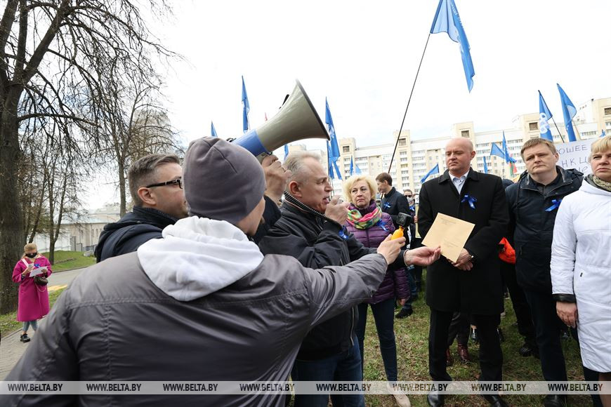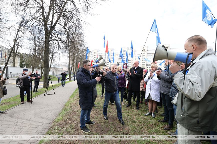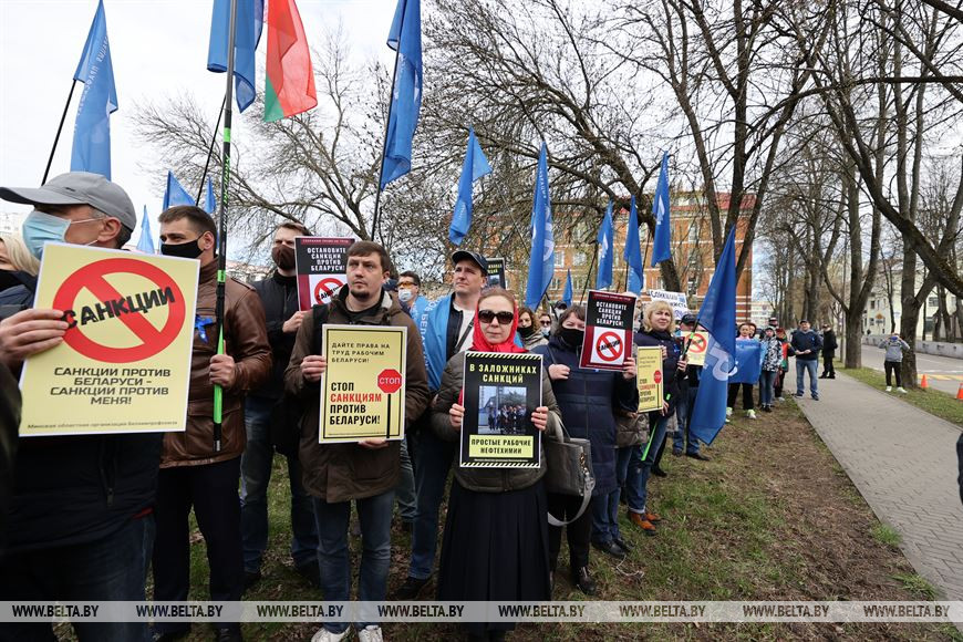 1 мая, Минск /Корр. БЕЛТА/. Пикет против дискриминационных мер, принятых властями Америки в отношении ряда белорусских предприятий, состоялся 1 мая у здания посольства США в Минске.-0-