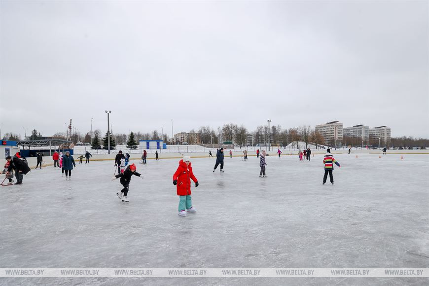 9 января, Минск /Корр. БЕЛТА/. В минском микрорайоне Чижовка работает самый большой открытый каток в Беларуси. Его площадь - 4032 кв.м. Каток находится на пересечении улиц Голодеда и Ташкентской. -0-