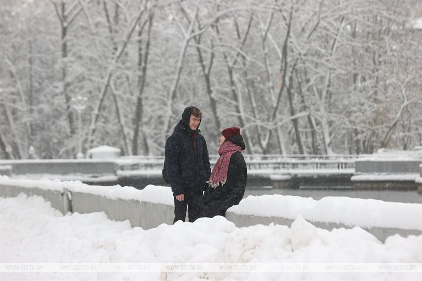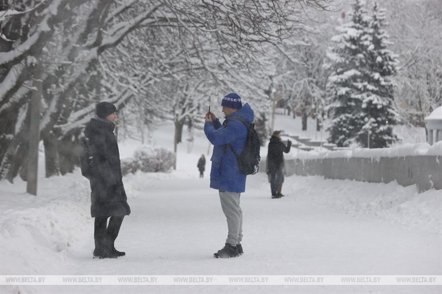 9 января, Гродно /Корр. БЕЛТА/. Настоящая зима вернулась в Беларусь. Города засыпает снегом.-0-