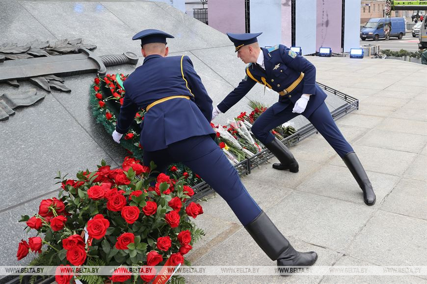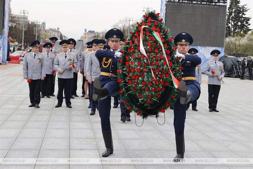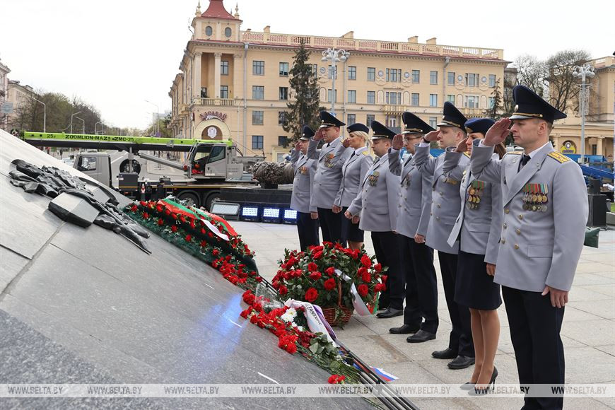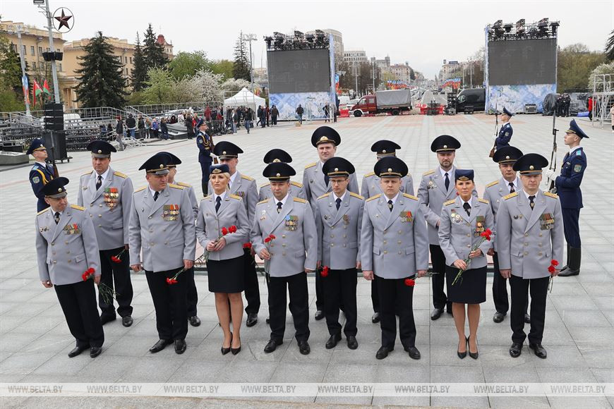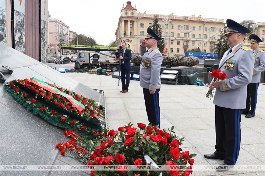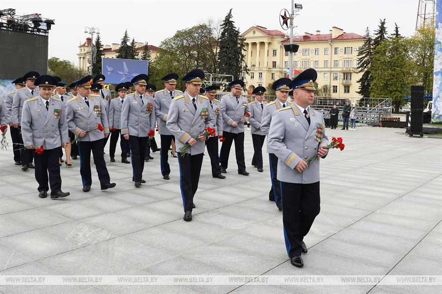 7 мая, Минск /Корр. БЕЛТА/. Председатель Следственного комитета Дмитрий Гора и сотрудники комитета 7 мая возложили цветы к монументу Победы в Минске.-0-