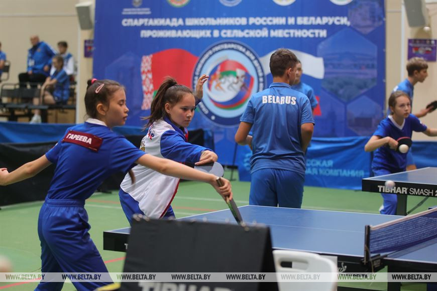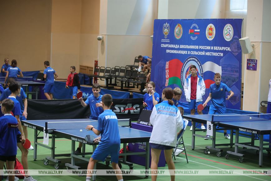 20 сентября, Гродно /Корр. БЕЛТА/. В программе спартакиады соревнования по трем видам спорта: баскетбол 3X3 (девушки), настольный теннис (юноши, девушки), мини-футбол (юноши). Участниками спортивных состязаний в Гродно стали 198 человек, в том числе 168 школьников России и Беларуси в возрасте 13-15 лет, которые проживают в сельской местности. В состав спортивной делегации Беларуси вошли юные спортсмены из Брестской, Гомельской, Гродненской и Минской областей. Российскую Федерацию представляют школьники из Республики Башкортостан, Чувашской Республики, Республики Северная Осетия - Алания, Челябинской, Тверской, Нижегородской и Смоленской областей.-0-
