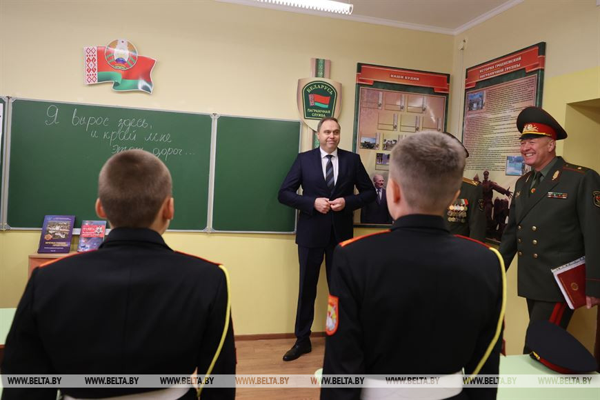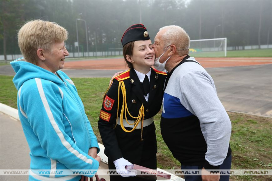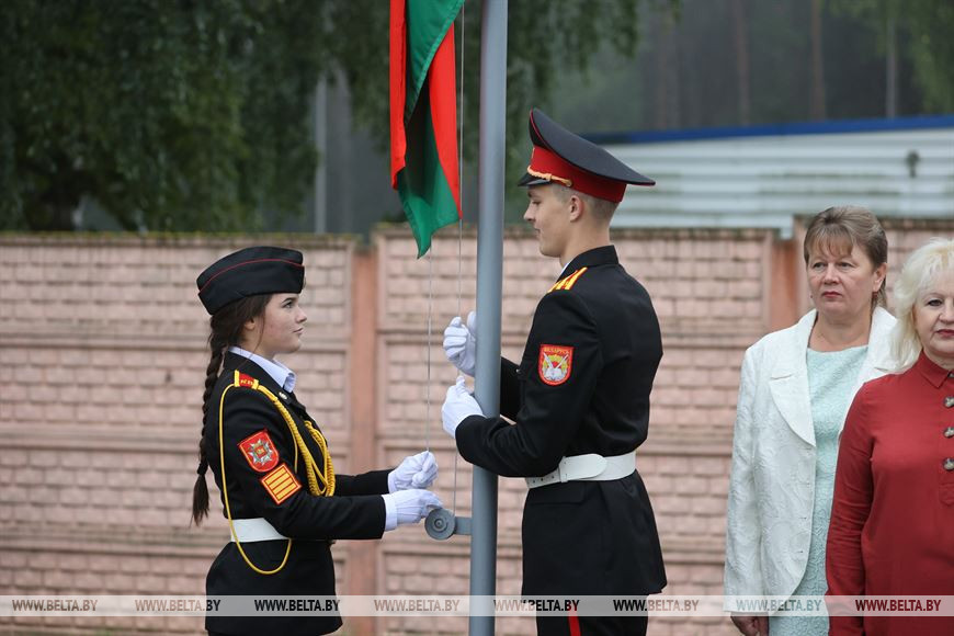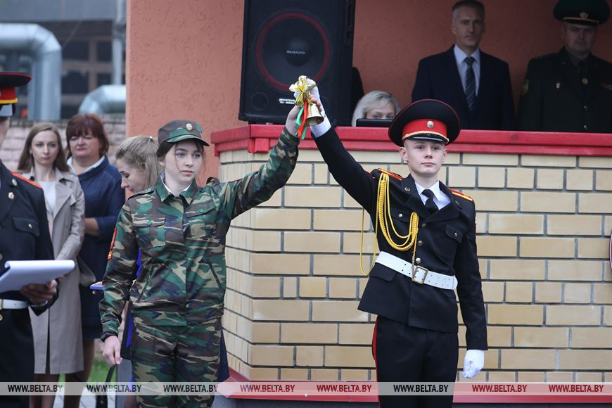 1 сентября, Гродно /Корр. БЕЛТА/.Торжественная линейка, посвященная Дню знаний и началу 2020/2021 учебного года, прошла 1 сентября в Гродненском областном кадетском училище с участием председателя облисполкома Владимира Караника.