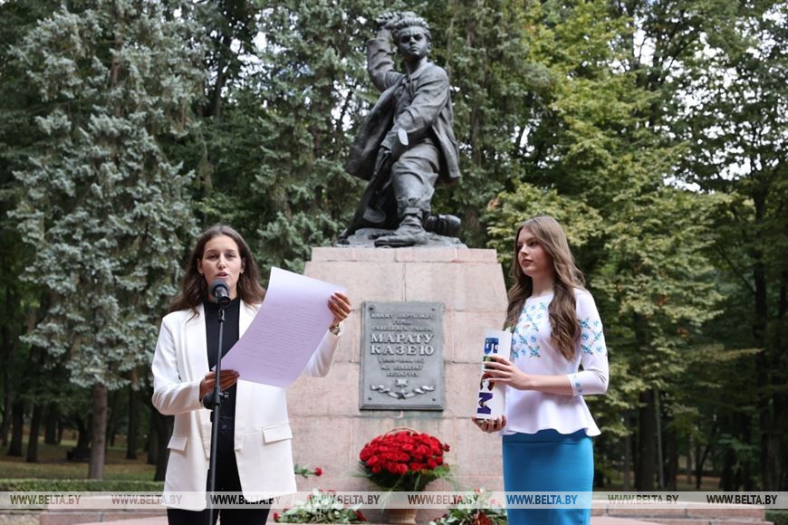 В Год исторической памяти молодежь возложила цветы к бронзовому монументу, возведенному Герою Советского Союза, юному партизану-разведчику Марату Казею.