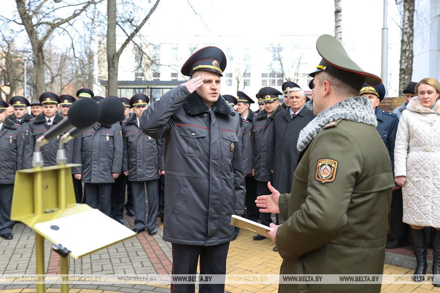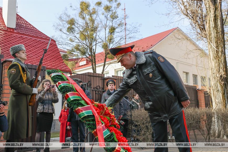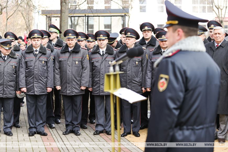 2 марта, Брест /Корр. БЕЛТА/. Возле памятного знака сотрудникам органов внутренних дел, погибшим при исполнении служебного долга, прошел торжественный митинг, посвященный 104-й годовщине белорусской милиции. В мероприятии приняли участие сотрудники и ветераны органов внутренних дел, а также семьи правоохранителей, не вернувшихся со служебных заданий.-0-