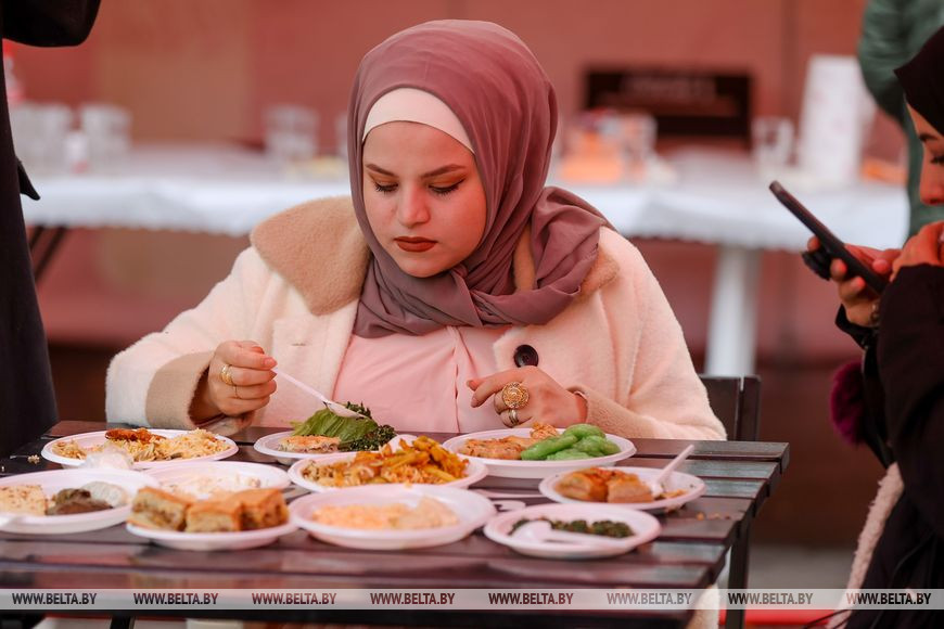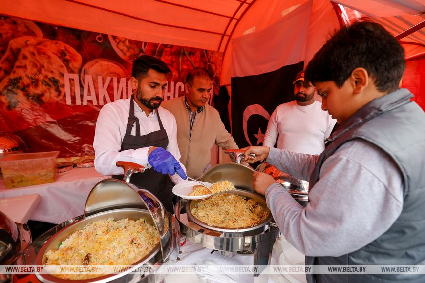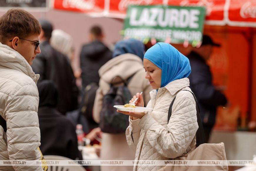 24 сентября, Минск /Корр. БЕЛТА/. Первый белорусский турнир халяльной кухни прошел 24 сентября на площадке Минской соборной мечети. Посетители познакомились с турецкой, палестинской, иранской, таджикской, узбекской, дагестанской, чеченской, туркменской, татарской, афганской и другими кулинарными традициями. Турнир призван популяризировать халяльную кухню и достижения поваров, готовящих халяльные блюда, продемонстрировать кулинарную культуру и художественное творчество мусульманских диаспор, проживающих в Беларуси, а также приобщить белорусов к культуре мусульман нашей страны. Организаторами мероприятия выступили Минское городское отделение Белорусского фонда мира, Мусульманское религиозное объединение в Республике Беларусь и Всемирная федерация ресторанного спорта.-0-