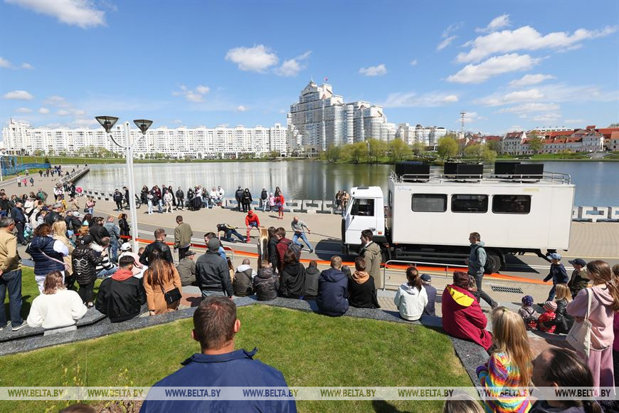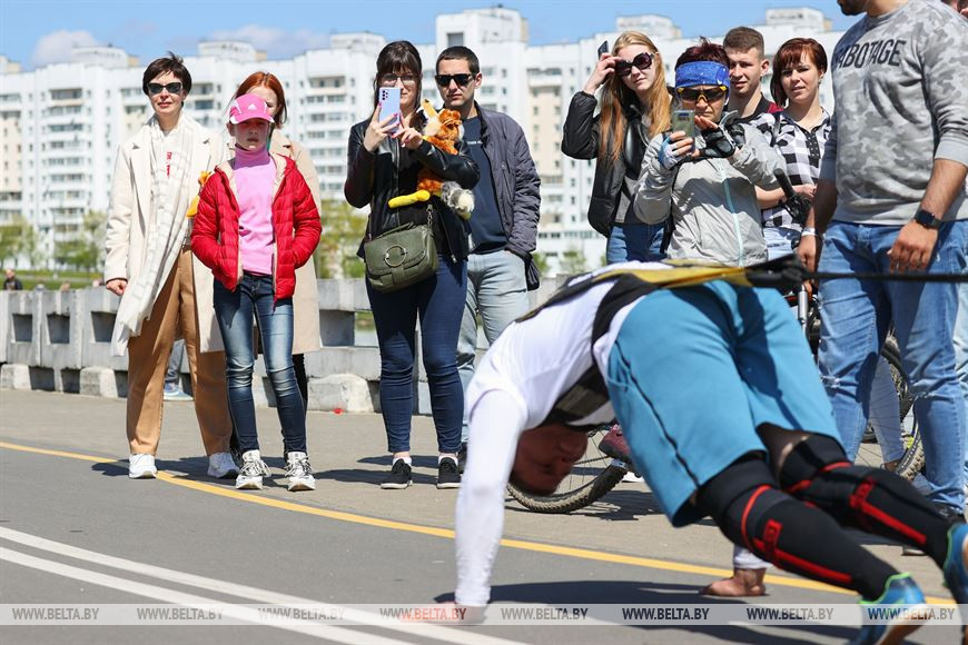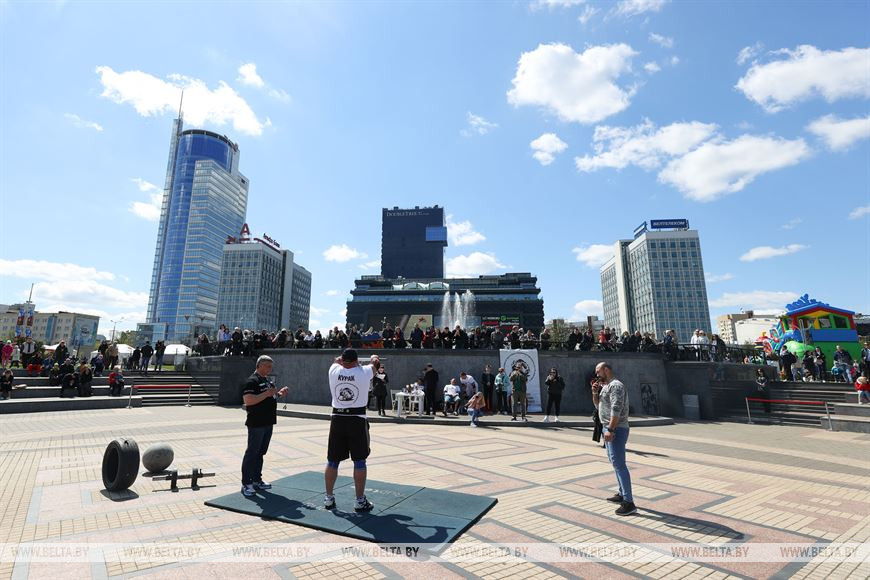 9 мая, Минск /Корр. БЕЛТА/. 9 мая на площадке у Дворца спорта прошел турнир по силовому экстриму Minsk Strong Battle. Соревнования уже стали традиционными, их организаторы - ОО "Федерация силового экстрима и безэкипировочного пауэрлифтинга" совместно с управлением спорта и туризма Мингорисполкома.-0-