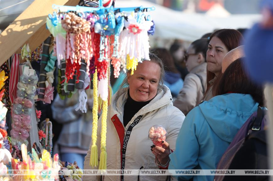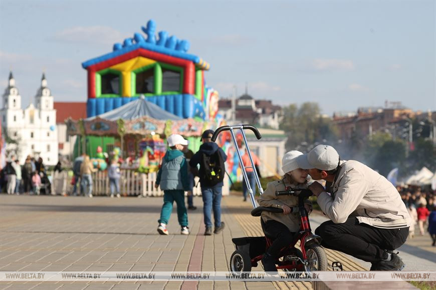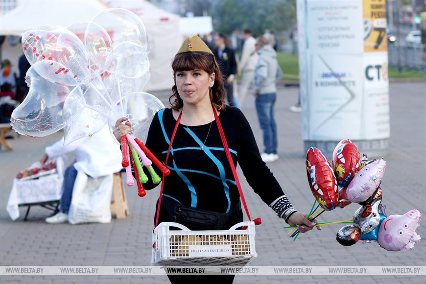 9 мая, Минск /Корр. БЕЛТА/. Празднование 9 Мая в Минске продолжается. У столичного Дворца спорта развернулась масштабная ярмарка, где каждый может приобрести продукты питания, одежду, украшения и прочие товары. Также на праздничной площадке проходит концерт, посвященный Дню Победы. -0-