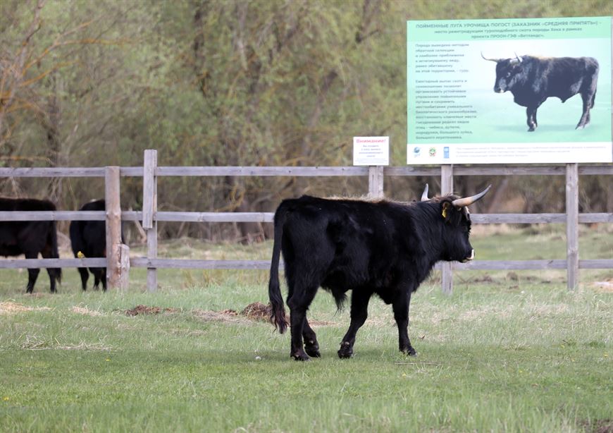 Для сохранения биоразнообразия на пойменные луга урочища Погост в заказнике в 2020 году были завезены 15 особей туроподобного скота породы Хека. Животных выпустили в дикую природу, и на площади в 200 га они содержатся на вольном выпасе.