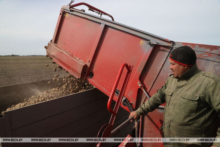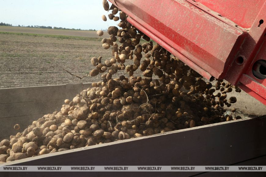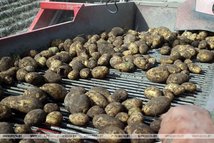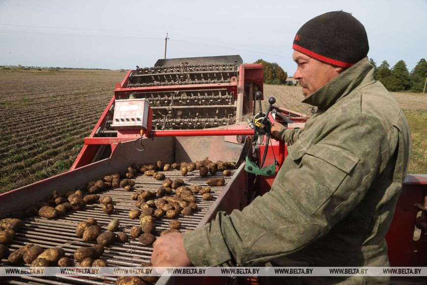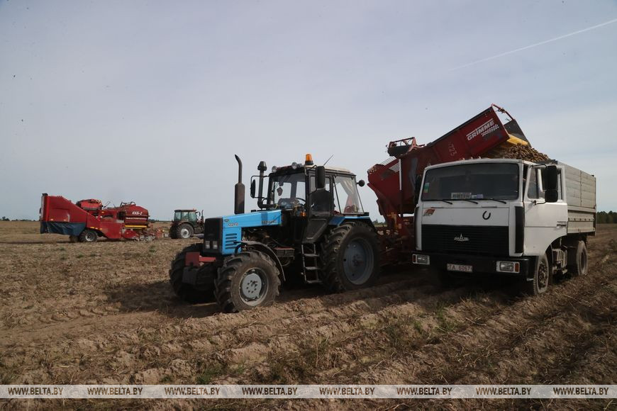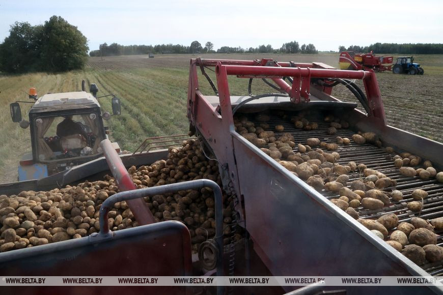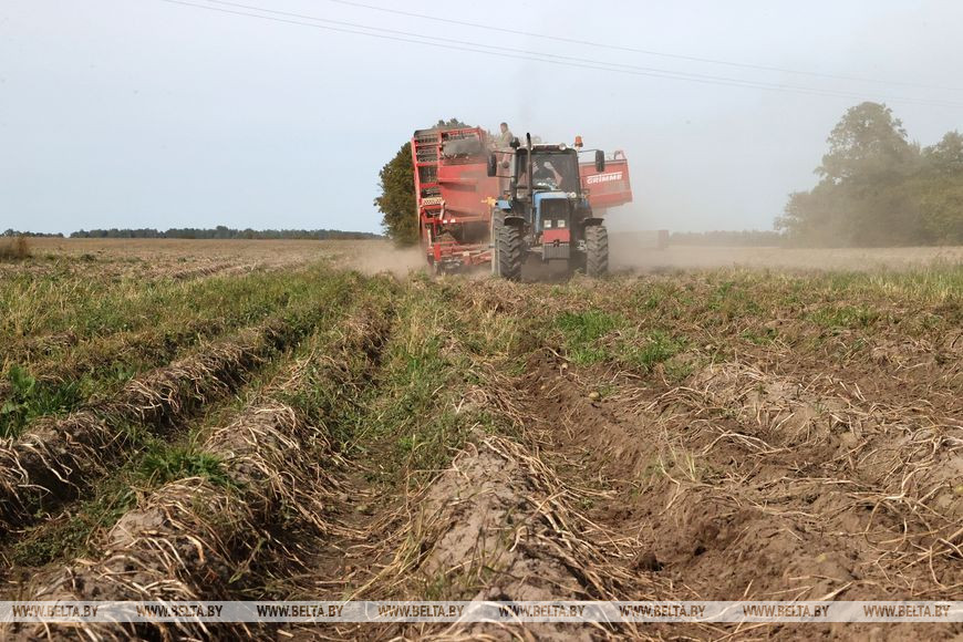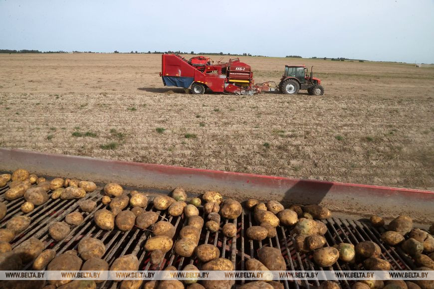 16 сентября, Могилев /Корр. БЕЛТА/. Уборка картофеля идет в СПК "Гигант" Бобруйского района. Данную культуру в хозяйстве выращивают на 400 гектарах и планируют получить урожайность свыше 340 центнеров с гектара.-0-