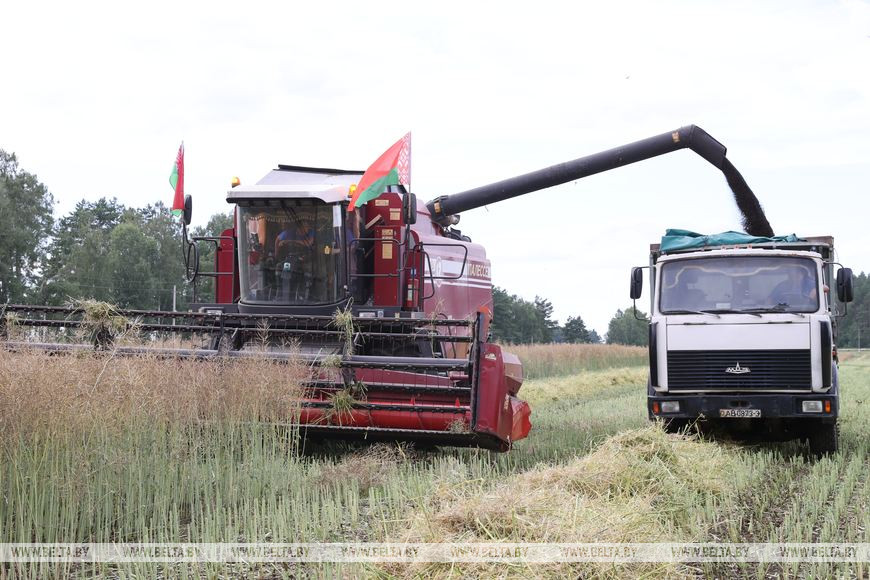 10 июля, Мозырский район /Корр. БЕЛТА/. В сельхозпредприятии КСУП "Экспериментальная база "Криничная" активно ведется уборка озимого рапса. В уборке заняты 12 комбайнов. Все экипажи укомплектованы. К уборке подлежит 3560 га зерновых и 380 га рапса. Ожидаемая урожайность более 25 ц/га.-0-
