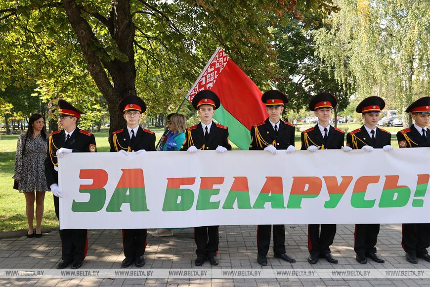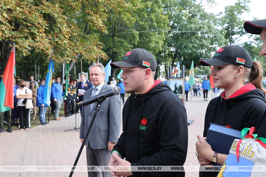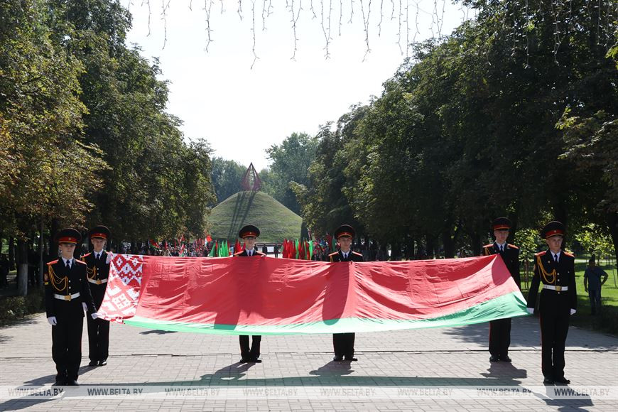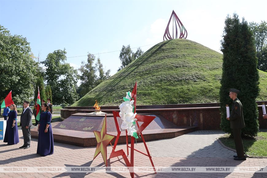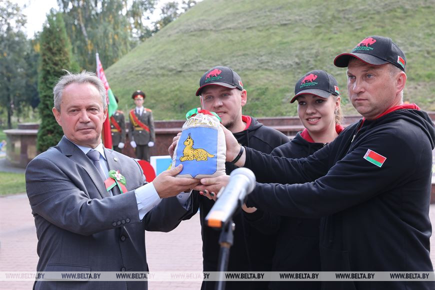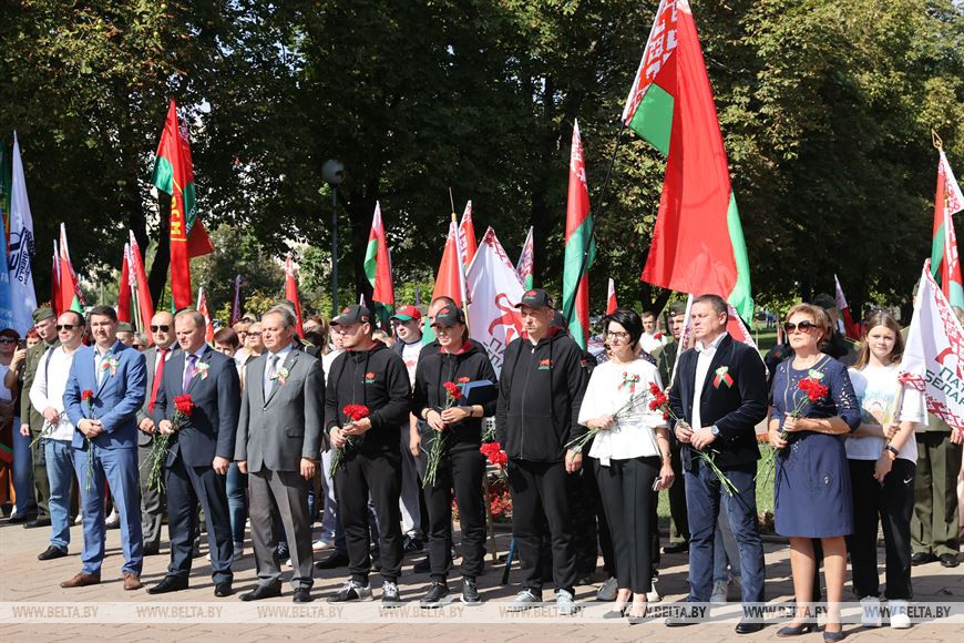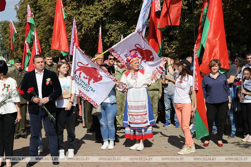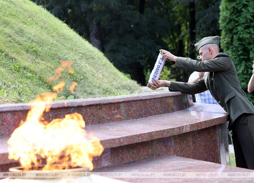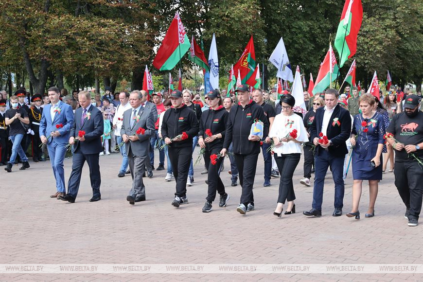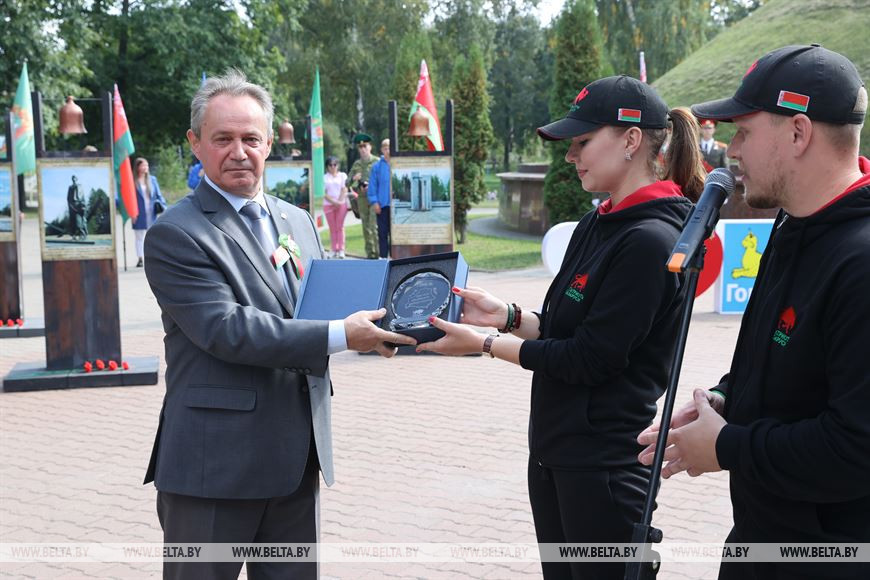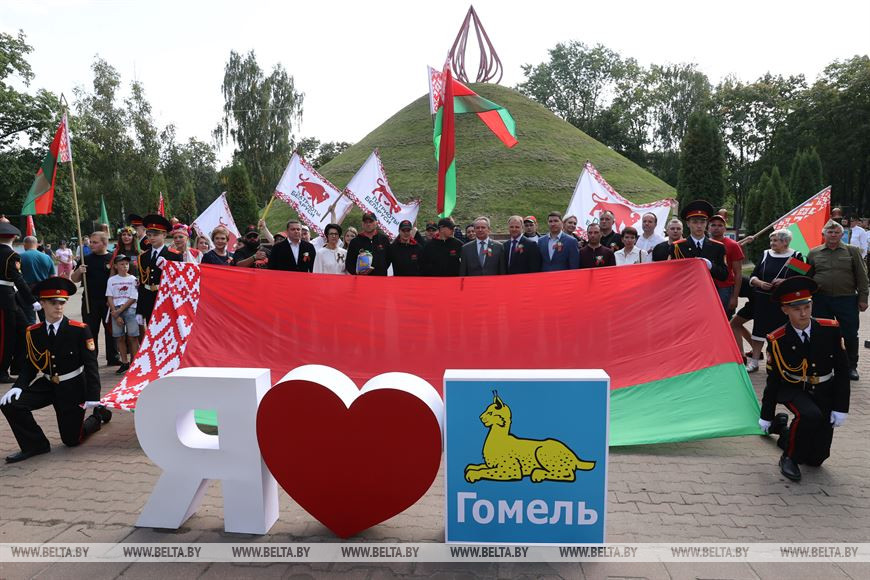 12 сентября, Гомель /Корр. БЕЛТА/. Эстафета республиканского автопробега "Символ единства", посвященного Году народного единства, продолжается по Гомельской области. Сегодня ее участники прибыли в Гомель. После возложения цветов и венков у Кургана славы на Речицком проспекте прошла встреча с активом города, на которой присутствовал председатель Гомельского горисполкома Петр Кириченко.-0-