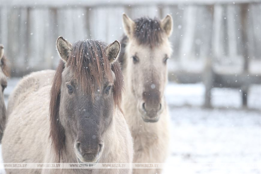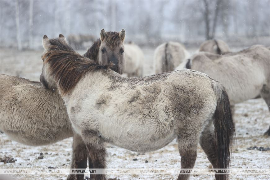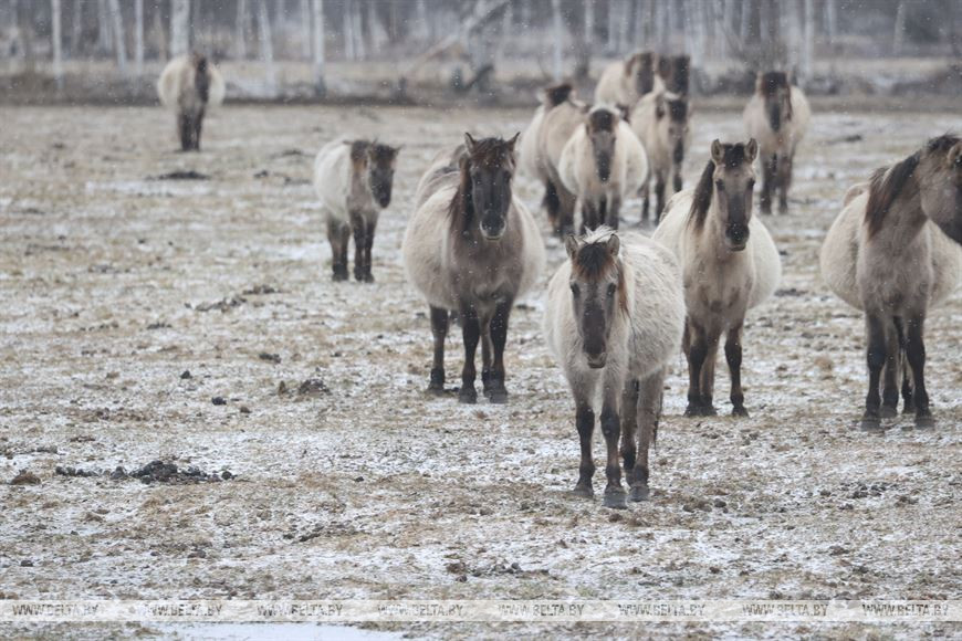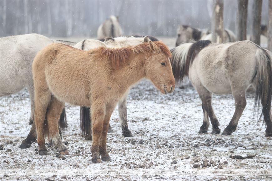 22 февраля, Минская область /Корр. БЕЛТА/. В республиканском ландшафтном заказнике "Налибокская пуща" живут сотни диких тарпановидных лошадей породы коник, которых в 2019 году на безвозмездной основе передали заказнику Нидерланды.