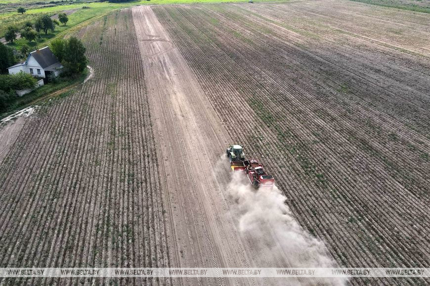 29 августа, Бобруйск /Корр. БЕЛТА/. В СПК "Гигант" Бобруйского района приступили к уборке картофеля. В хозяйстве планируют получить урожайность этой культуры 300 - 350 ц/га.-0-