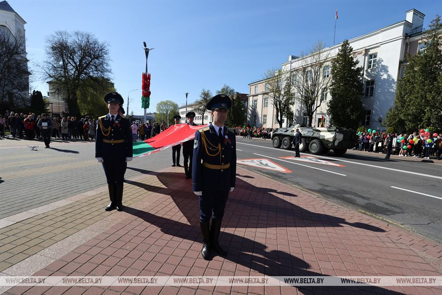 9 мая, Брест /Корр. БЕЛТА/. 9 мая на площади Ленина г.Бреста состоялись торжественный вынос и поднятие Государственного флага Республики Беларусь.-0-