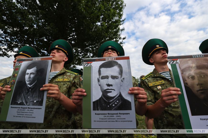 Во время мероприятия курсанты выстраиваются с портретами погибших в первых боях Великой Отечественной войны защитников Белорусского пограничного округа. Благодаря этой акции современное поколение не просто помнит о подвиге защитников Родины, заступивших ровно 80 лет назад на охрану государственной границы. Принимая участие в "Боевом расчете" на брестской земле, молодежь понимает, какую цену заплатили пограничники в 1941 году за мирное будущее народа. В этот раз в "Боевом расчете" приняли участие руководство Госпогранкомитета, ветераны-пограничники, родственники погибших в первых боях на государственной границе, школьники военно-патриотических классов Минска, Гродно, Бреста и Лиды, пограничники России, Казахстана и Узбекистана. Также в этом году мероприятие посетили делегации Академии управления при Президенте, Белорусского государственного университета физической культуры, Нижегородской областной общественной организации ветеранов "Нижегородский пограничник" имени Героя Советского Союза генерала армии Матросова, Всероссийского Союза пограничного братства Российской Федерации.