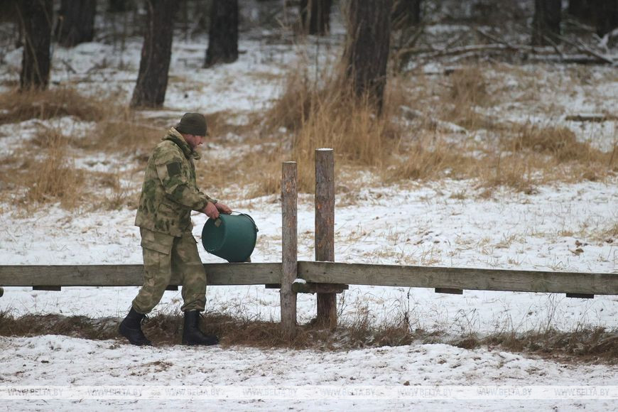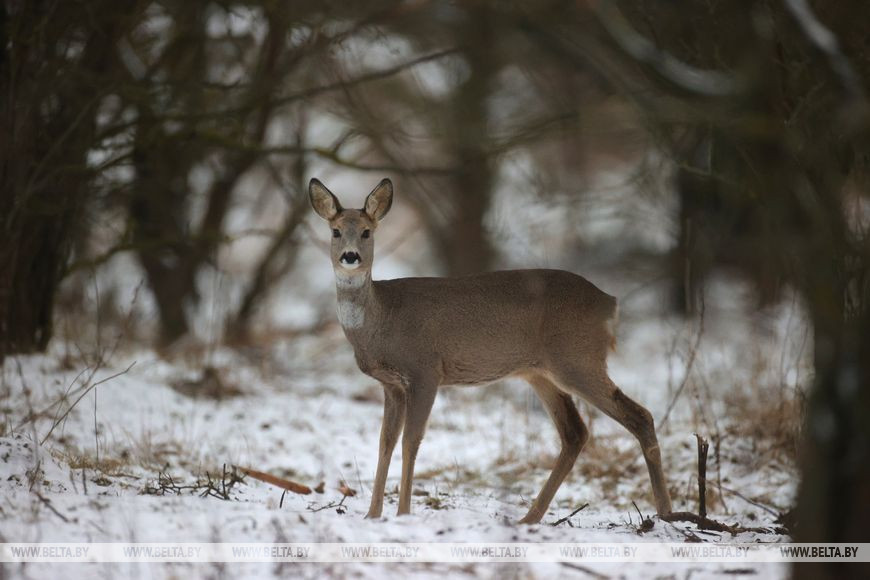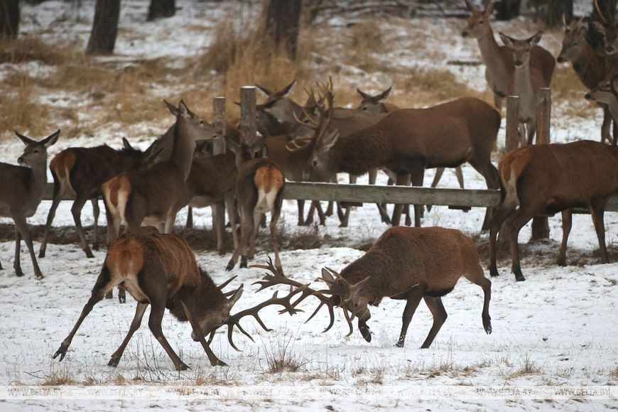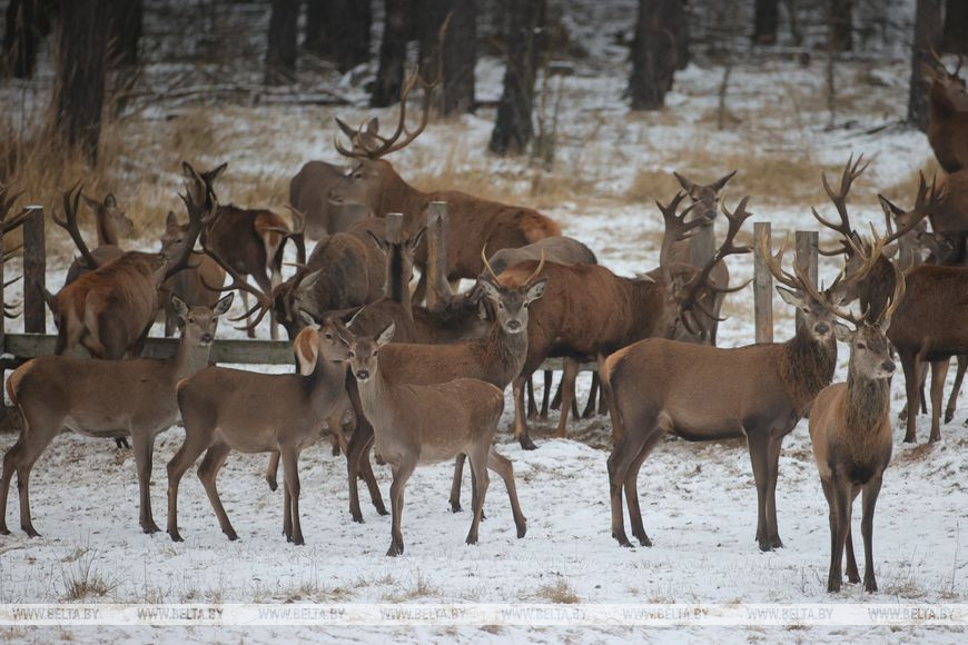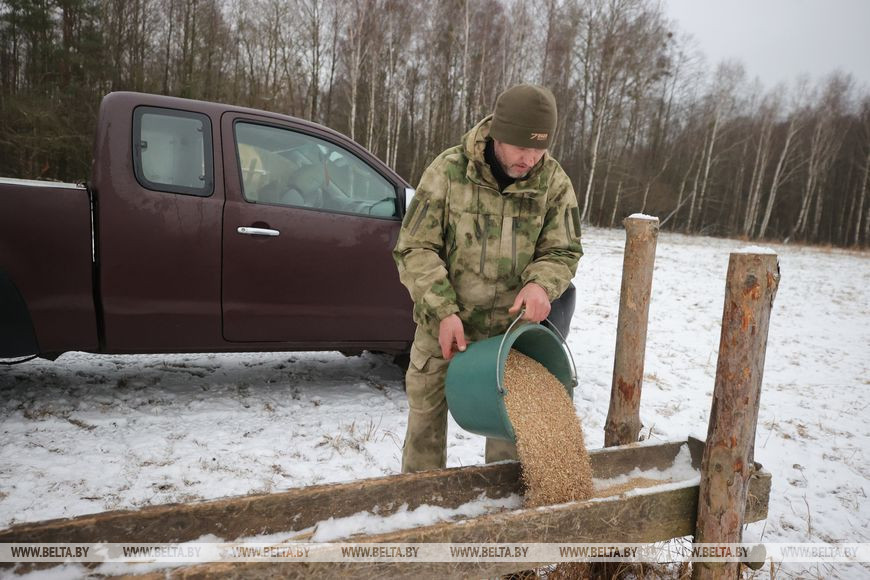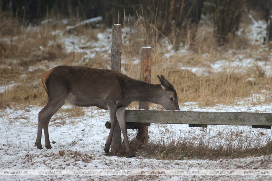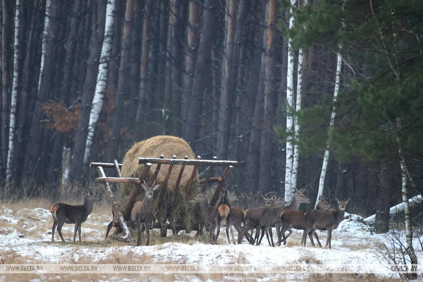 9 января, Гродно /Корр. БЕЛТА/. Егеря охотничьего хозяйства ООО "Белая тропа" помогают диким животным перенести трудности зимы, организуя для них специальные столовые. Для оленей и косуль при установлении постоянного снежного покрова в специально выстроенные кормушки закладывается сено, которое заготавливают в течение лета. Кроме этого в каждый подкормочный стол ежедневно насыпают по 50 кг зерна.-0-